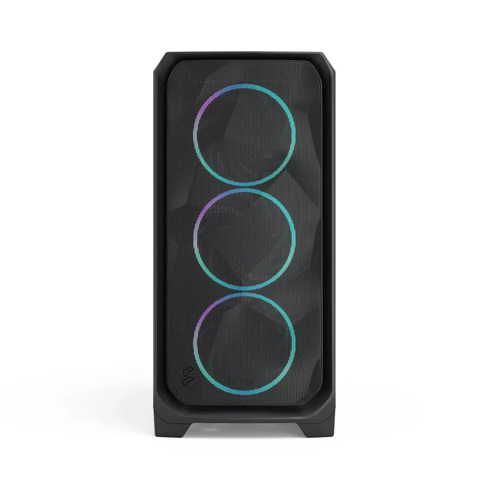 E-ATX formátumú Midi-torony kialakítású számítógépház 3 db beépített RGB ventilátorral.