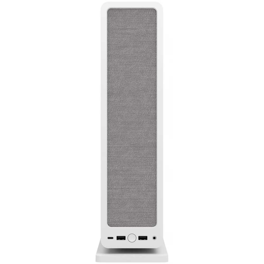 Egyedi megjelenésű, fehér színű, stílusos kialakítású Mini-ITX formátumú számítógépház.