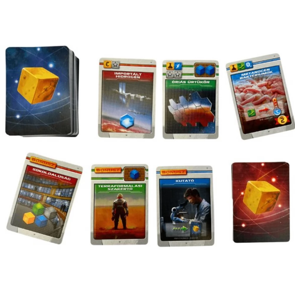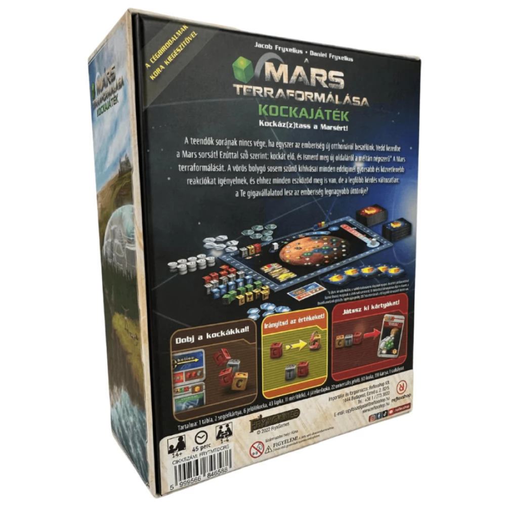 Készen állsz újra meghódítani a vörös bolygót? Utazz áhított csillagközi otthonunkba, ám ezúttal egy csavarral: a díjnyertes A Mars terraformálása minden izgalmát és kihívását kockajáték formájában gondolták újra. Vedd kézbe, szó szerint, a Mars sorsát, alapozd meg az élet feltételeit, és legyen a Tiéd a leghatalmasabb gigavállalat a bolygó felszínén.