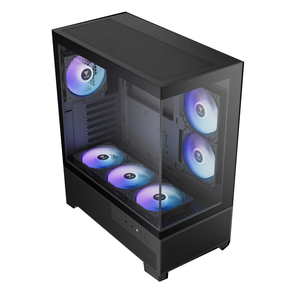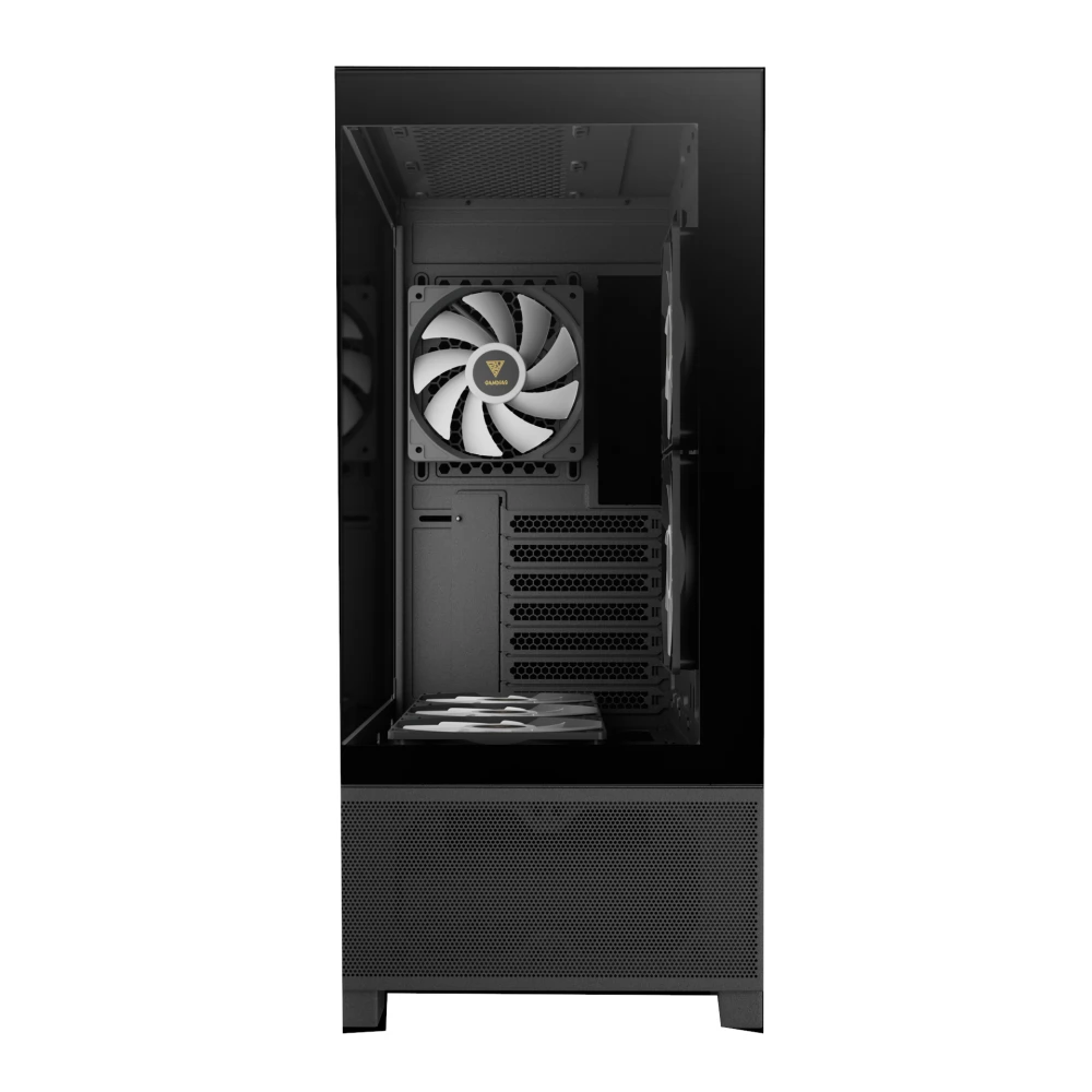 Az AURA GC12 ARGB egy megfizethető, panorámás kialakítású középkategóriás ház. Edzett üveg előlappal és oldalsó panelekkel rendelkezik a zavartalan betekintés érdekében, hat előre telepített ARGB ventilátorral, amelyek élénk megvilágítást és hatékony légáramlást biztosítanak, tágas belső terekkel és modern esztétikával, amely bemutatja az összeállításodat.