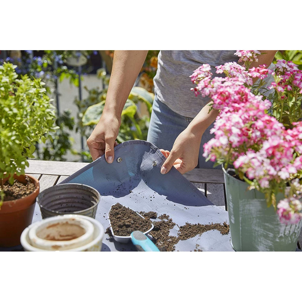 A GARDENA Ültetőszőnyeg L használatával tiszta marad az erkély és a terasz. Csak terítsd le a szőnyeget egy asztalra vagy a padlóra. Elfér rajta minden fontos munkaeszköz, például a cserepek, a viráglapát...