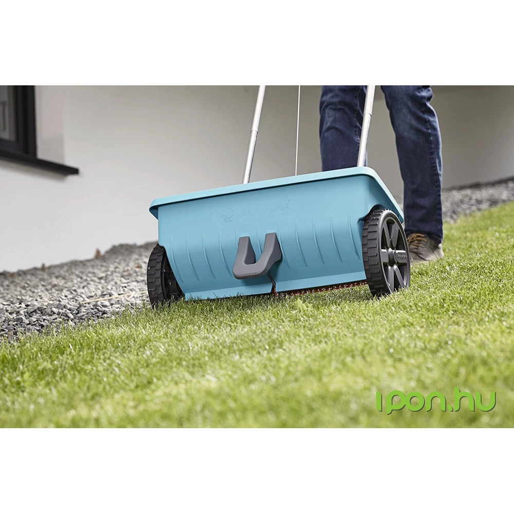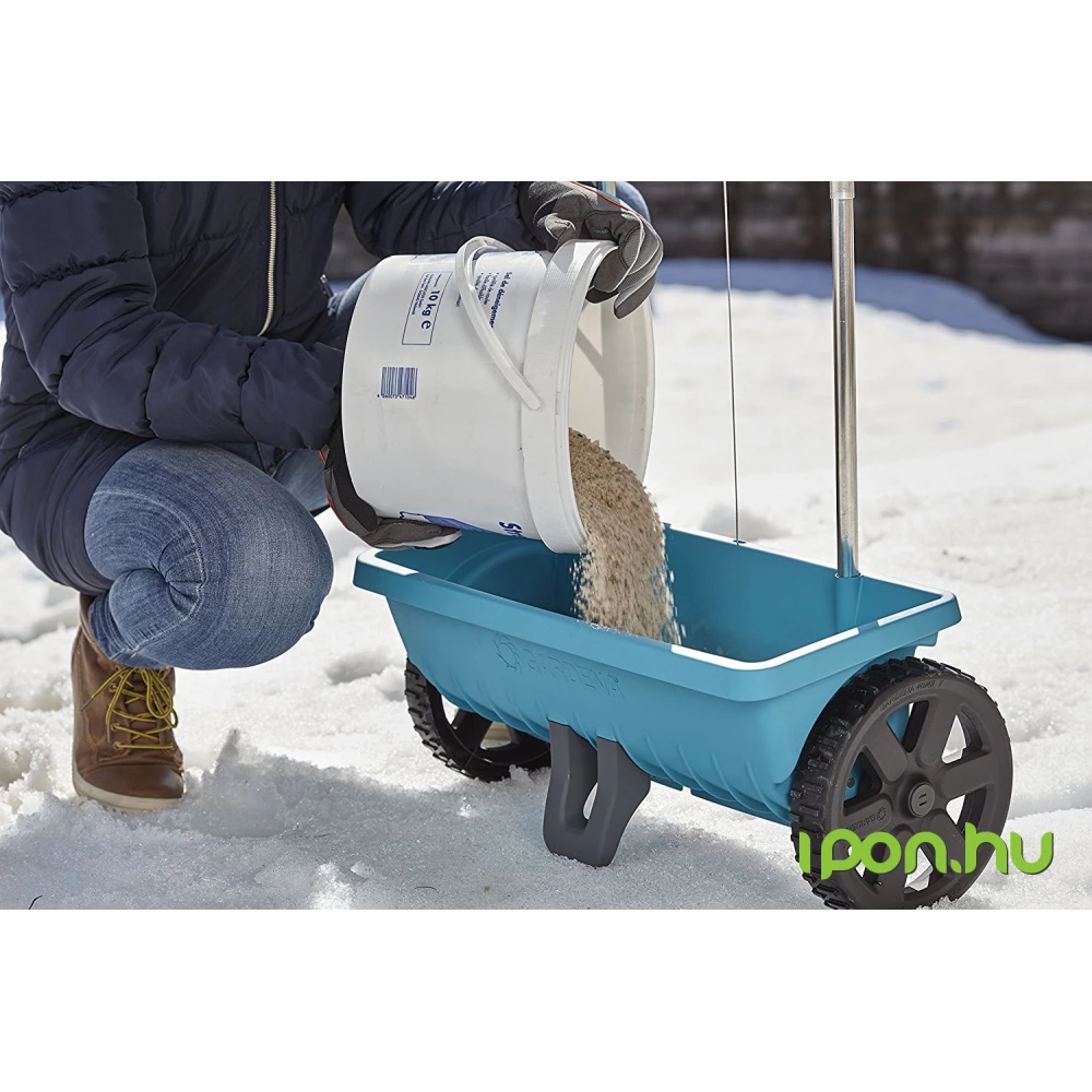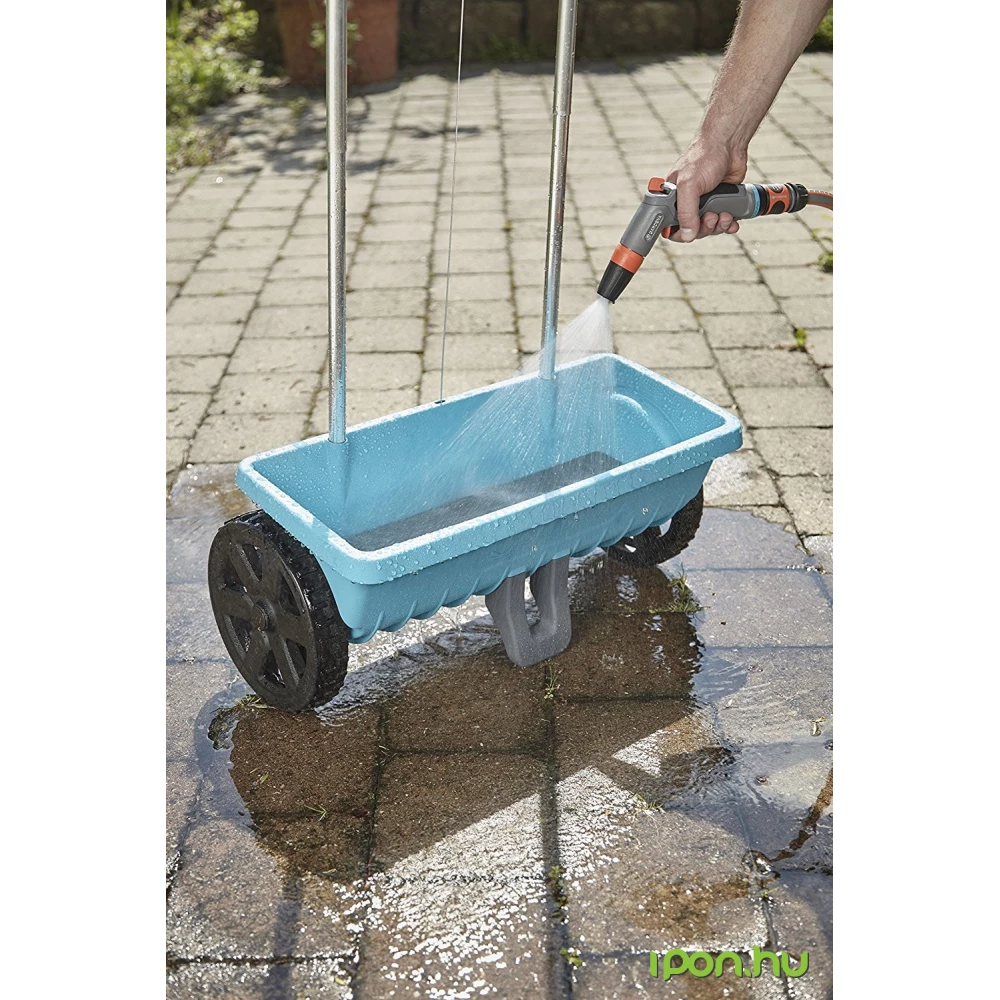 A GARDENA szórókocsi L kiválóan alkalmas műtrágya és útszóró só kényelmes kiszórására közepes nagyságú területeken. Könnyedén működtethető a markolaton található nyit/zár funkció, és ugyanitt állítható be a kiszórandó mennyiség is. A szórókocsi fedelén található zárószalag olyan szorosan zár, hogy sem álló helyzetben, sem töltés közben sem használat után nem szóródik ki belőle semmi. A GARDENA Szórókocsi L különleges szóróhengere az anyagot egyenletesen és pontosan szórja ki, ráadásul csak ott, ahol kell. A szórókocsi könnyedén, vízzel tisztítható.