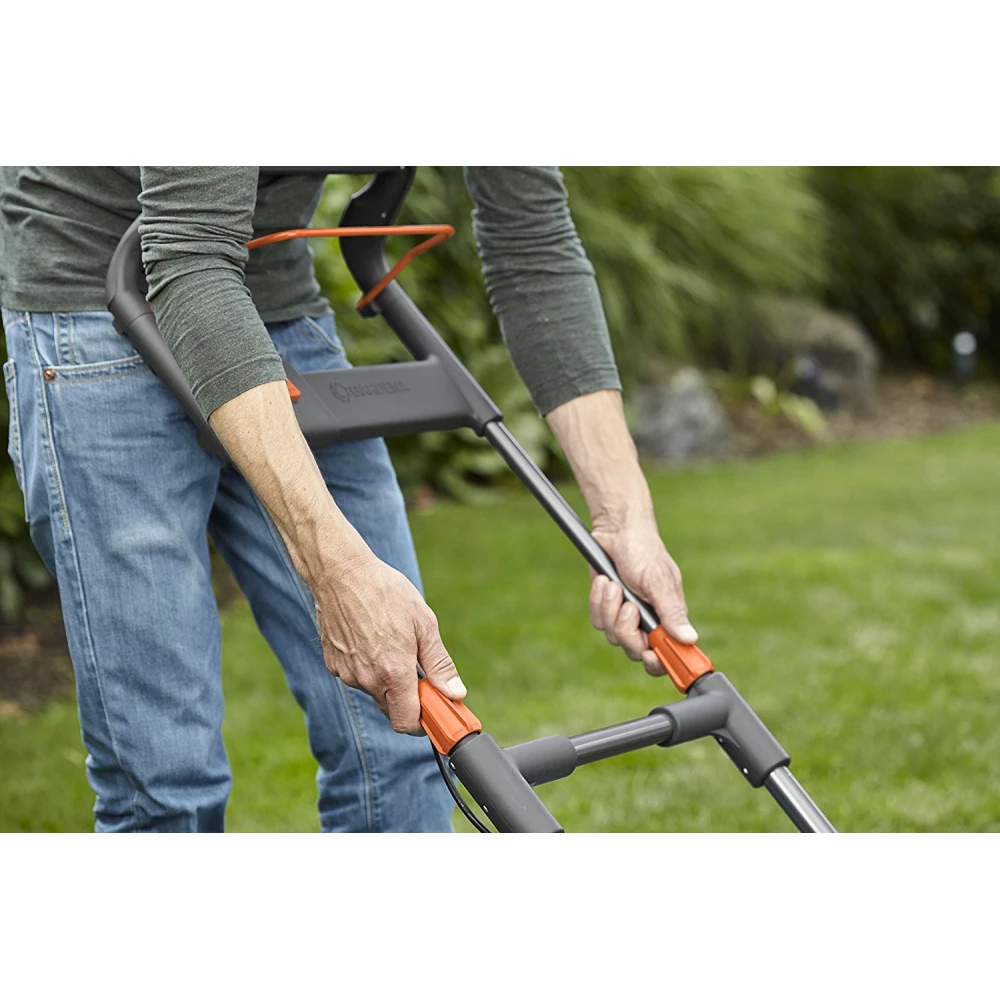 A markolat mentén végigfutó, ergonomikusan kialakított kapcsolókarokkal felszerelt tolókarral kényelmesebb és rugalmasabb a használat. Az ergonomikus markolatkiképzéssel a kéz természetes helyzetben tartható, és a fűnyíró különösen könnyedén tolható és irányítható. A fűnyíró rugalmasan használható minden tolókar-beállítással.