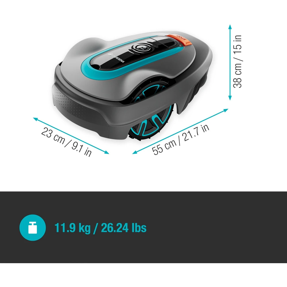 - Kezelés: Billentyűzeten és kijelzőn vagy alkalmazáson keresztül, vezérlés a GARDENA smart system alkalmazáson keresztül (online regisztráció szükséges): ingyenes letöltés, előfizetési díj nélkül, elérhető okostelefonokra, táblagépekre és webre