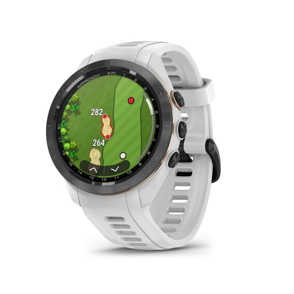 GARMIN Approach S70 42mm fekete kerámia fehér szilikon szíjjal (ED)