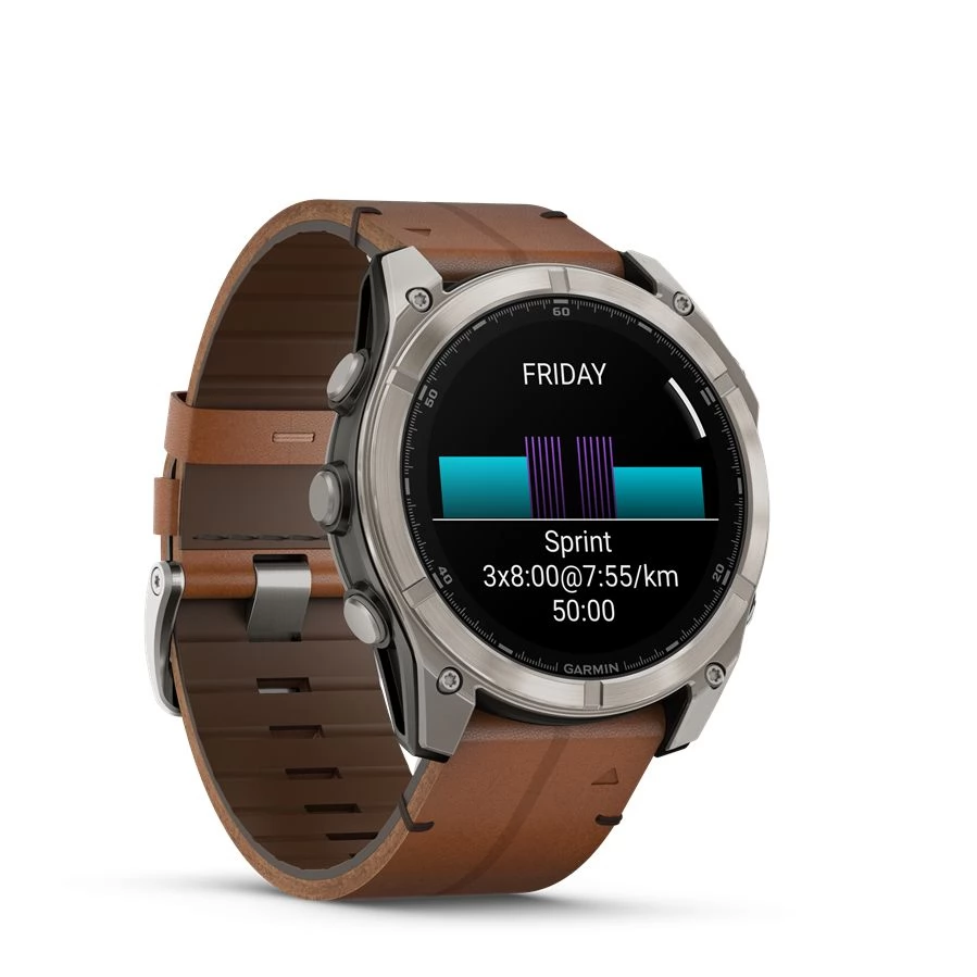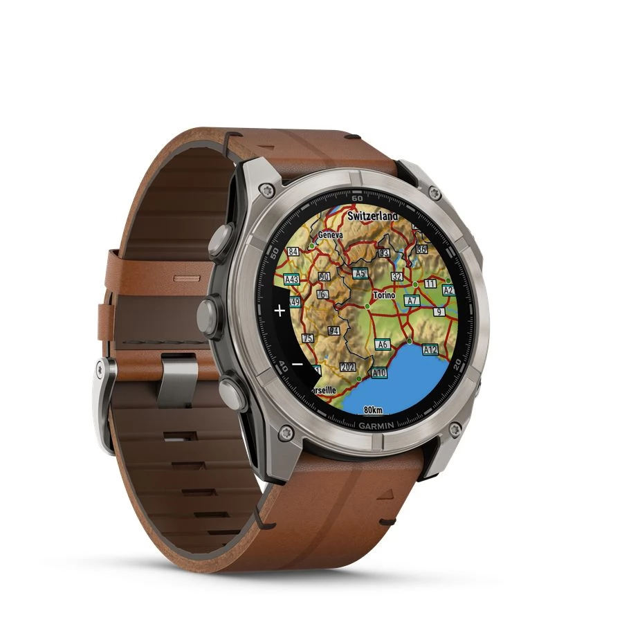 GARMIN Fenix 8 51mm Amoled Sapphire titánium gesztenyebarna bőrszíjjal + grafitszürke szilikon szíjjal