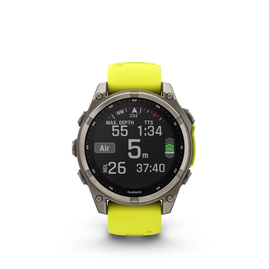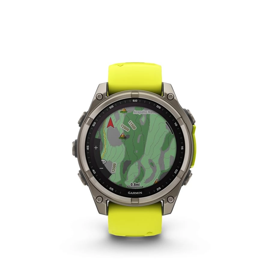 GARMIN Fenix 8 51mm Solar Sapphire titánium neonsárga/grafit szilikon szíjjal