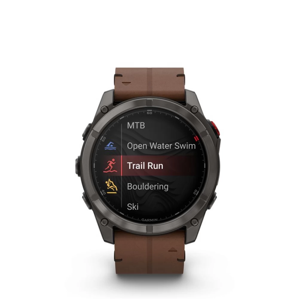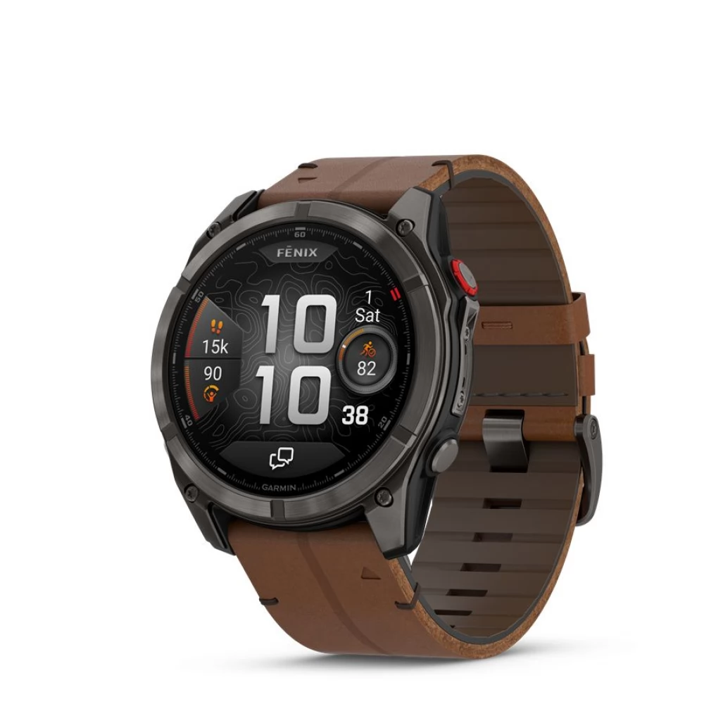 GARMIN Fenix 8 Pro Amoled Sapphire 51mm karbonszürke DLC Titanium barna bőr- és fekete/szürke szilikon szíjjal (ED XD)
