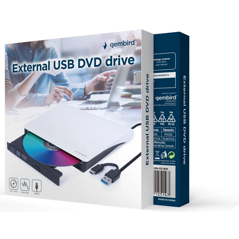 GEMBIRD DVD-USB-03-BW External USB DVD drive fekete-fehér