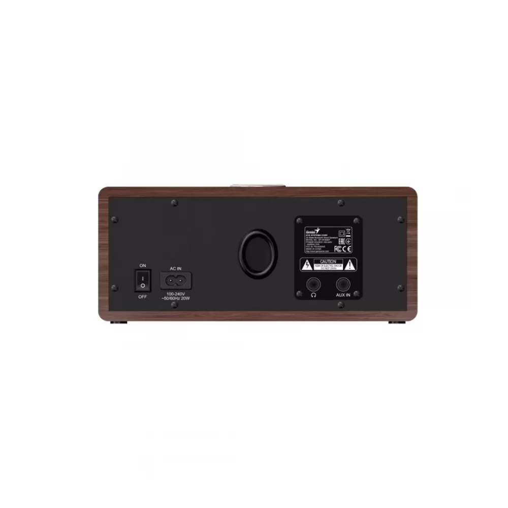 A Genius SP-HF505BT hangszóró ideális alapja lesz otthoni hangrendszerének. Tökéletes zenehallgatáshoz, filmek, videók megtekintéséhez vagy játékhoz. Fából készült szerkezetének köszönhetően elegáns megjelenésű, és természetes, torzításmentes hangzást produkál, amely összesen 20 W RMS teljesítményt nyújt. A Bluetooth technológián keresztül történő vezeték nélküli csatlakoztathatóság lehetővé teszi, hogy kényelmesen, vezeték nélkül csatlakozhasson okostelefonjához, táblagépéhez vagy laptopjához. Természetesen egy AUX bemenet is rendelkezésre áll más eszközök csatlakoztatásához, illetve egy fejhallgató kimenet. A hangszóró tetején található egyszerű gomb szolgál a vezérlésre.