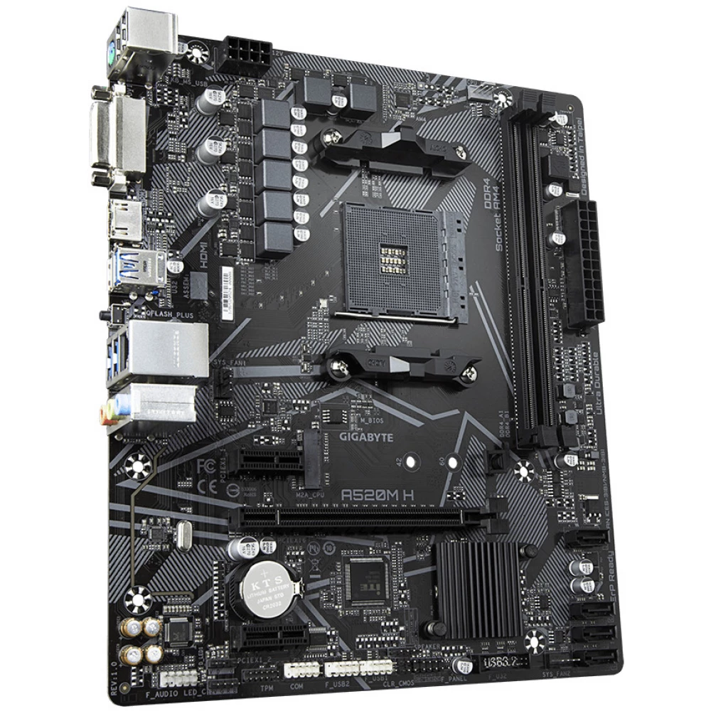 A GIGABYTE A520M H (rev. 1.0) egy kisebb méretű, kompakt alaplap, ami a legújabb AMD Ryzen sorozattal, 3. generációs AM4 csatlakozóval van felszerelve, ezzel hatékonyabbá és gyorsabbá teszi a számítógépet. A Dual Channel Memory Architecture támogatással és a DDR4 4400(O.C.)/4000(O.C.)/3600(O.C.)/3400(O.C)/3200/2933/2667/2400/2133 MHz-as memória frekvenciával működő, kiváló minőségű RAM támogatásának köszönhetően a rendszert nem lassítja semmi.