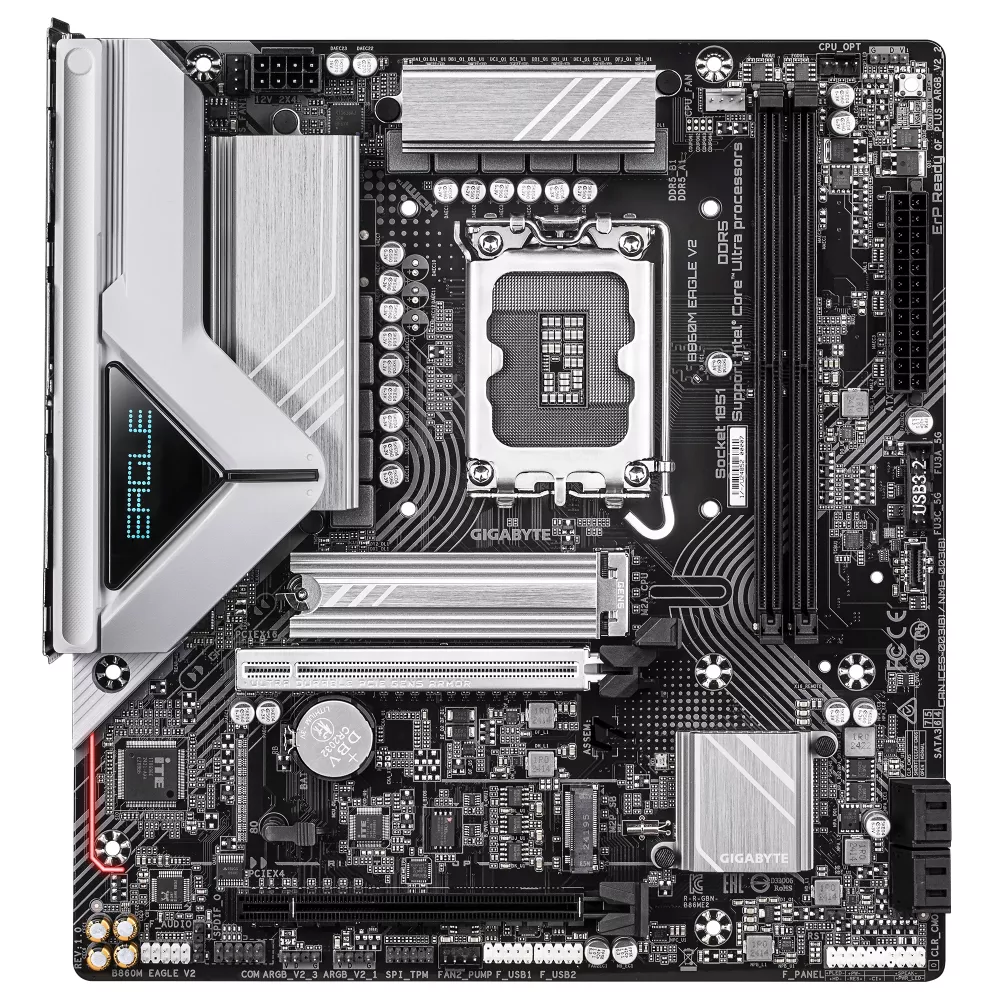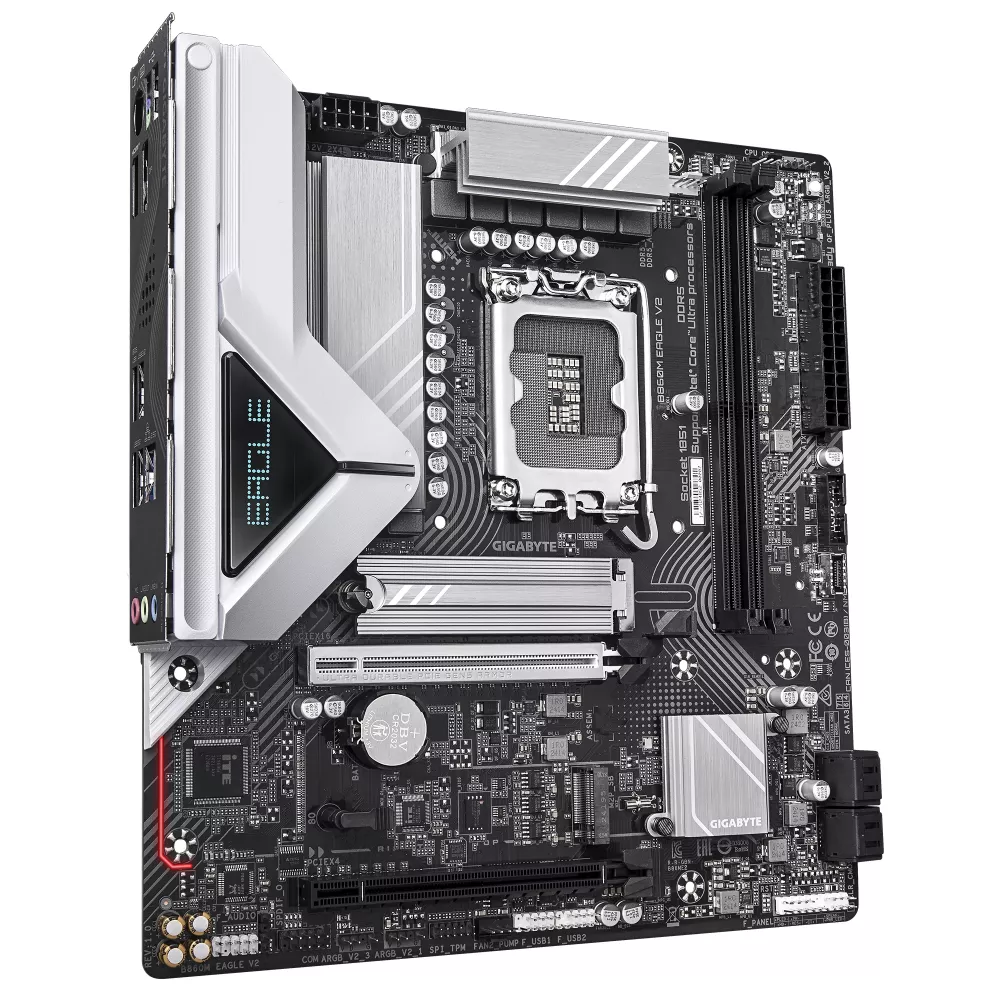 GIGABYTE B860M EAGLE V2 típusú alaplap LGA-1851 foglalattal, Intel B860 chipsettel, Processzorban integrált videokártyával, 2 darab DDR5/CUDIMM memóriafoglalattal (max 128GB). 7 darab USB 2.0 port, 6...