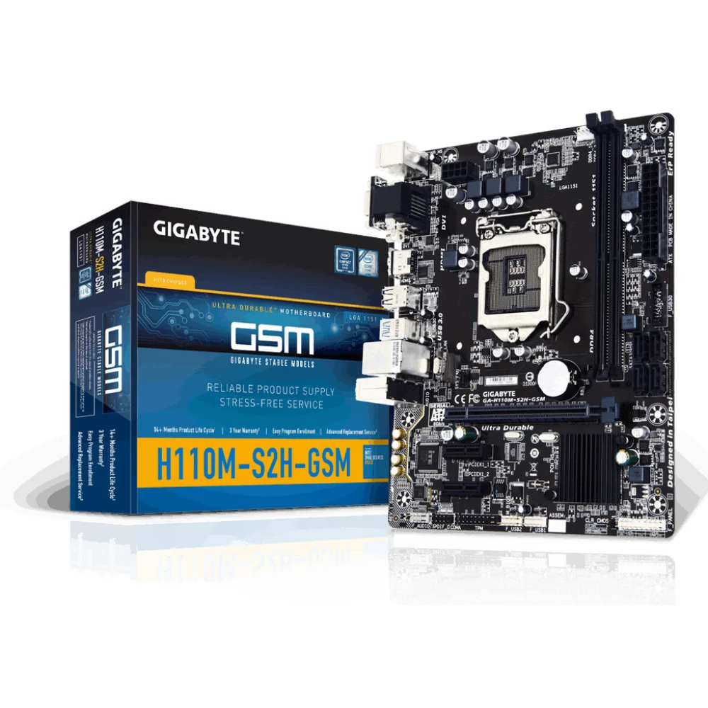 GIGABYTE GA-H110M-S2H típusú alaplap LGA-1151 (100, 200) foglalattal, Intel H110 chipsettel, Processzorban integrált videókártyával, 2 darab DDR4 memóriafoglalattal (max 32GB). 8 darab USB 2.0 port, 4 darab USB 3.0 port.
