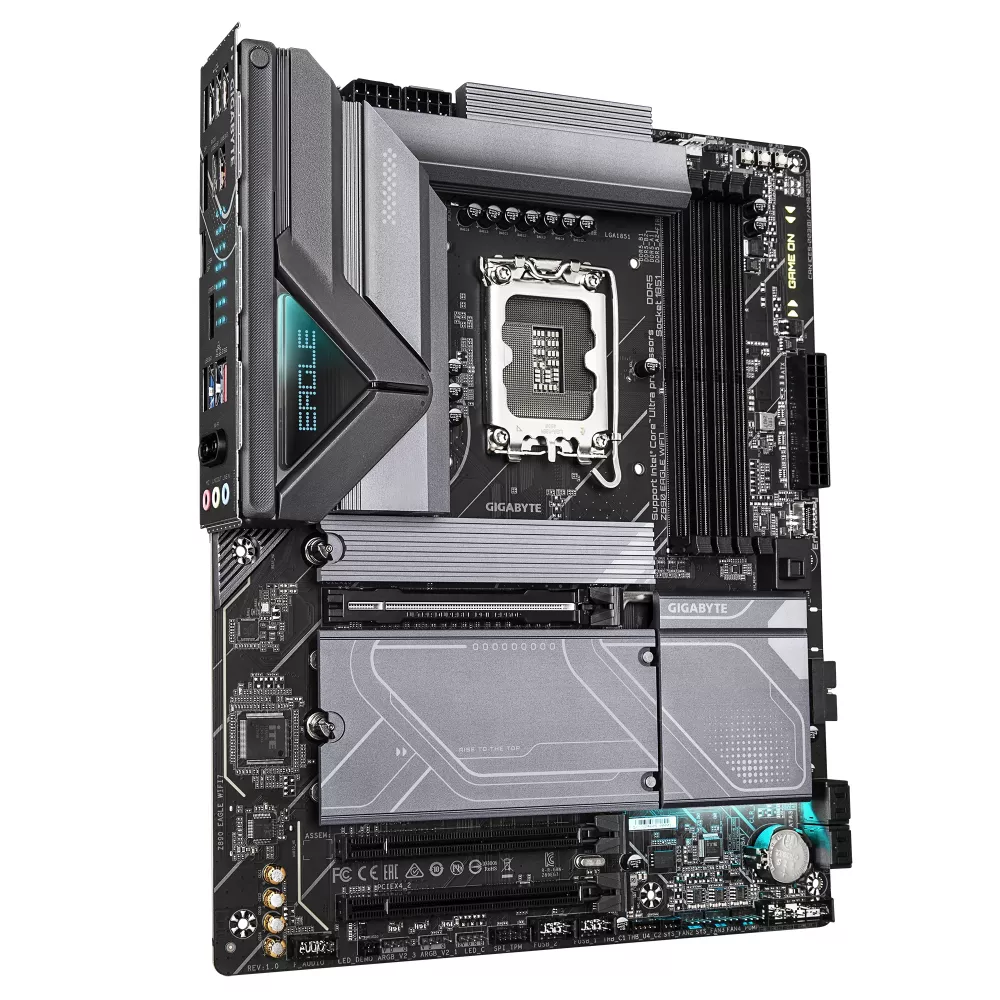 GIGABYTE Z890 EAGLE WIFI7 típusú alaplap LGA-1851 foglalattal, Intel Z890 chipsettel, Processzorban integrált videokártyával, 4 darab DDR5 memóriafoglalattal (max 256GB). 8 darab USB 2.0 port, 5 darab USB 3.0 port, 3 darab USB 3.1 port.