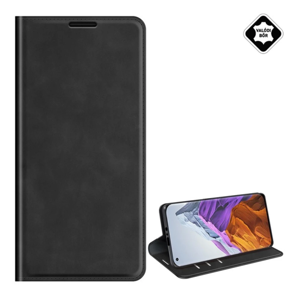 GIGAPACK xiaomi mi 11 pro 5g tok álló, valódi bőr flip, asztali tartó, fekete