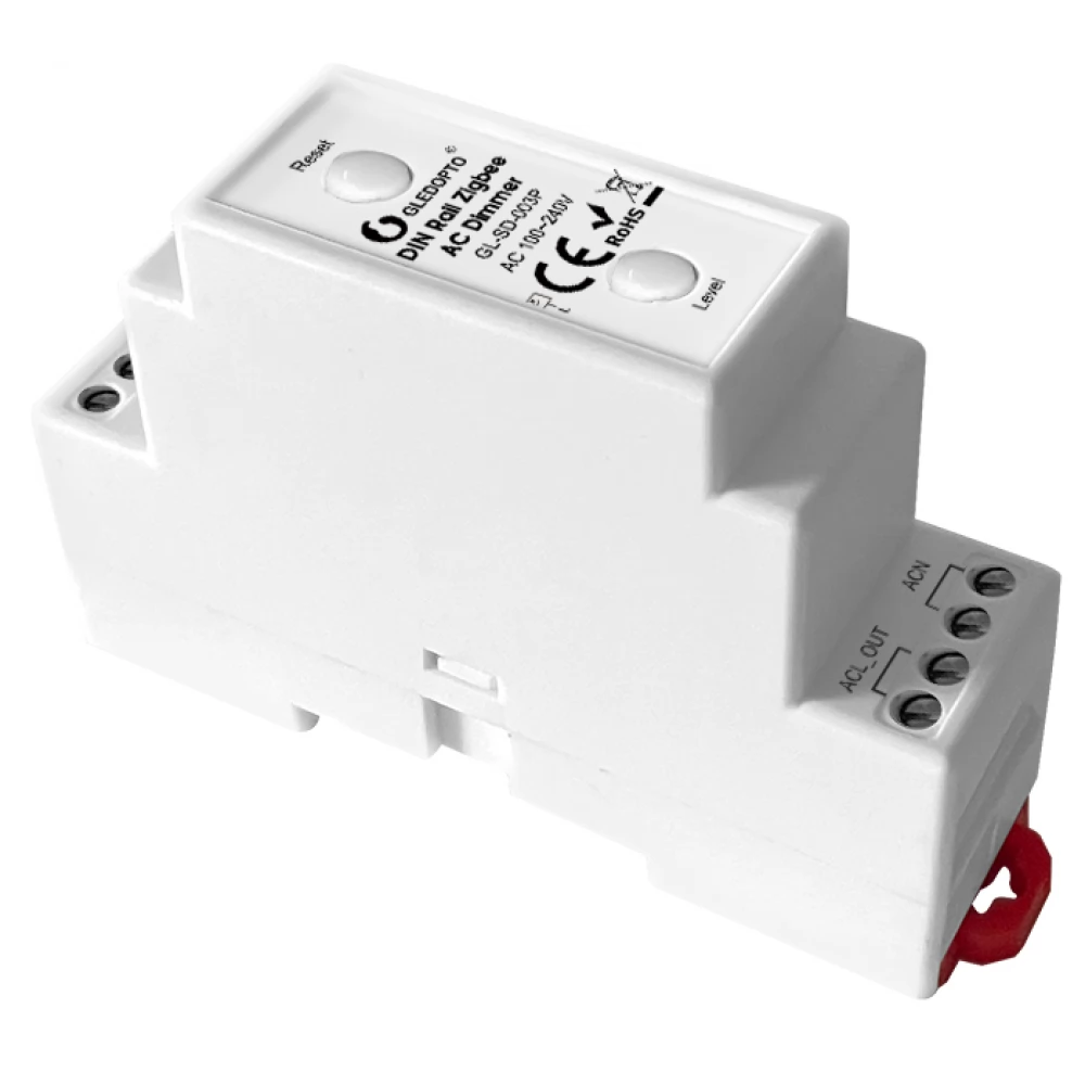 A Gledopto Pro sorozatú, azaz Zigbee 3.0 protokollt támogató, és egyben RF távirányítható termék egy 230V-os dimmer (fényerőszabályzó) relé, mely villamossági szekrény DIN-sínre szerelhető.