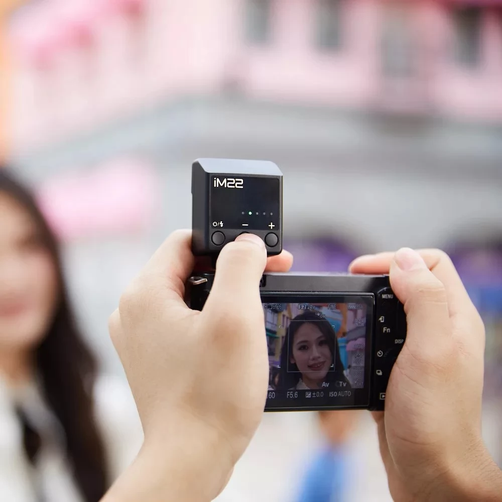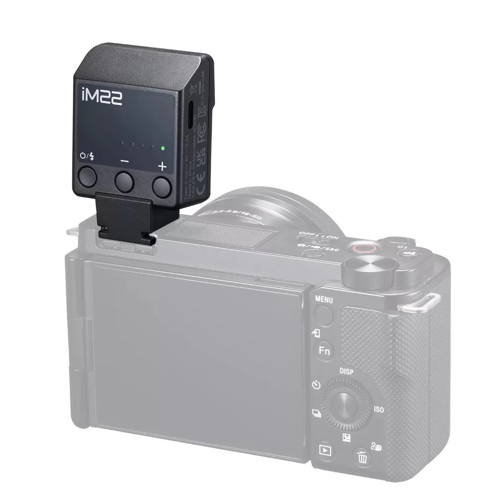 Az iM22 csupán 34 gramm súlyú, ezzel a könnyedség csodája. Kompakt formája tökéletesen illeszkedik a kamerádhoz, legyen szó utcai fotózásról vagy utazási pillanatok dokumentálásáról – minden helyzetben a legjobb társad lesz.