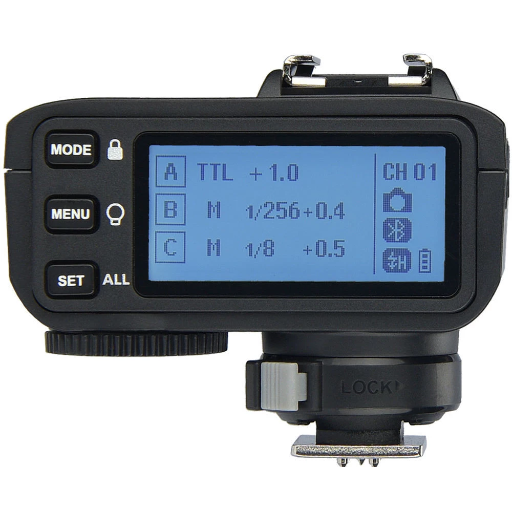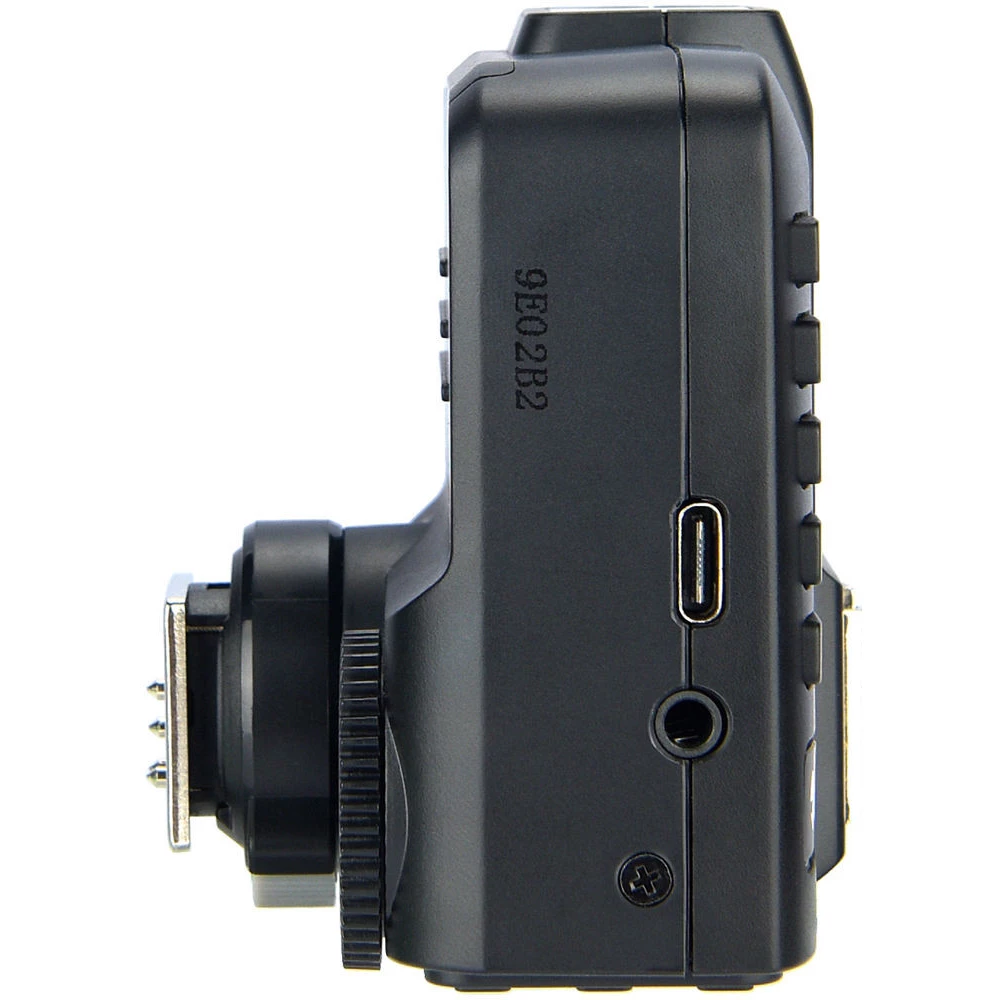 Az X2 kioldó is megkapta az új, billenőkaros vakupapucs rögzítést. Végre búcsút mondhatunk a tekergetésnek. Új AF segédfény. USB-C csatlakozás a firmware frissítéshez. Bluetooth kapcsolatot is tud a kioldó, mely lehetővé teszi, hogy telefonhoz vagy tablethez csatlakoztassuk. A segítségével műtermi fotózáskor a vakukat a telefonunkról, vagy a tabletünkről tudjuk majd vezérelni, így nem gond, ha a kamera állványon van és a tetejére rakott vakuvezérlő jobbára elérhetetlen. A telefon/tablet irányítja az X2-t, az X2 pedig a vakukat. (Jelenleg az iPhone, Huawei és Samsung telefonok újabb modelljeivel kompatibilis)