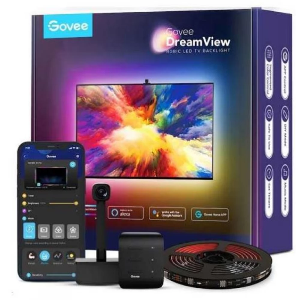 A Govee H6198 egy lenyűgöző RGBIC LED TV háttérvilágítás, amely tovább gazdagítja a játék- és filmélményeket. A kamera, amelyet a TV vagy PC képernyő közepén helyeznek el, intelligensen képes érzékelni és feldolgozni a megjelenített színeket majd automatikusan alkalmazza őket a LED háttér-fényekre. A fényhatások számtalan módon beállíthatóak az előkonfigurált jelenetek és az automatikus módok segítségével.