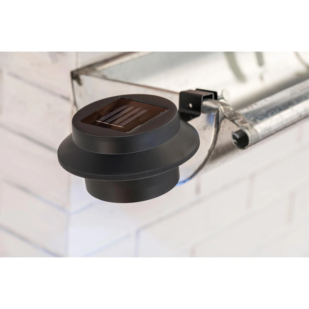 Napelemes ereszcsatorna-lámpa, amely környezetbarát és energiahatékony megoldást kínál kültéri világításhoz. A beépített napelem napközben feltölti az akkumulátort, így elektromos csatlakozás nélkül működik.