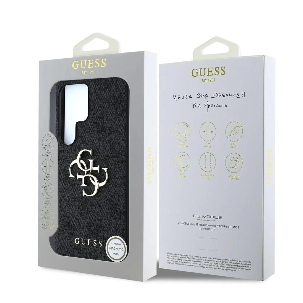GUESS PU 4G Metal Logo Samsung Galaxy S25 Ultra hátlap tok fekete
