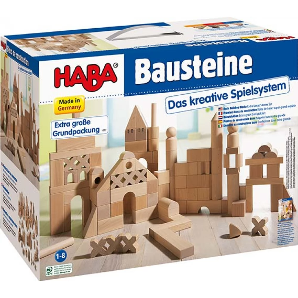 102 részes nagy méretű, kezdő készlet. Többféle építőelemet tartalmaz, ami remek kiindulási alap a fa építőjátékkal játszó gyerekeknek.