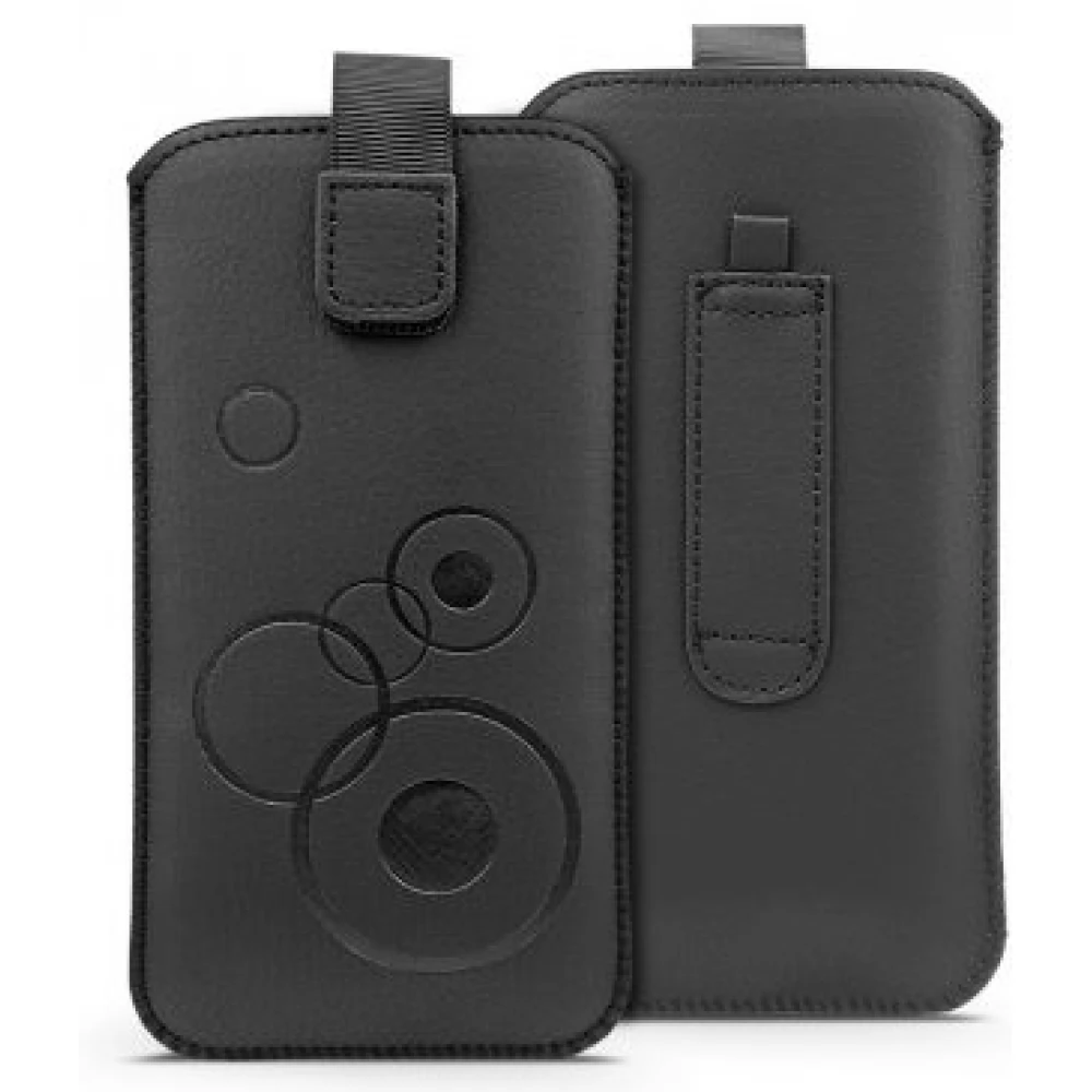 HAFFNER Deco Slim Univerzális kihúzható ökobőr tok Samsung A51/A31/M21/A22 4G/ Xiaomi Mi 11Lite 5G/ Oppo Reno5 5G fekete
