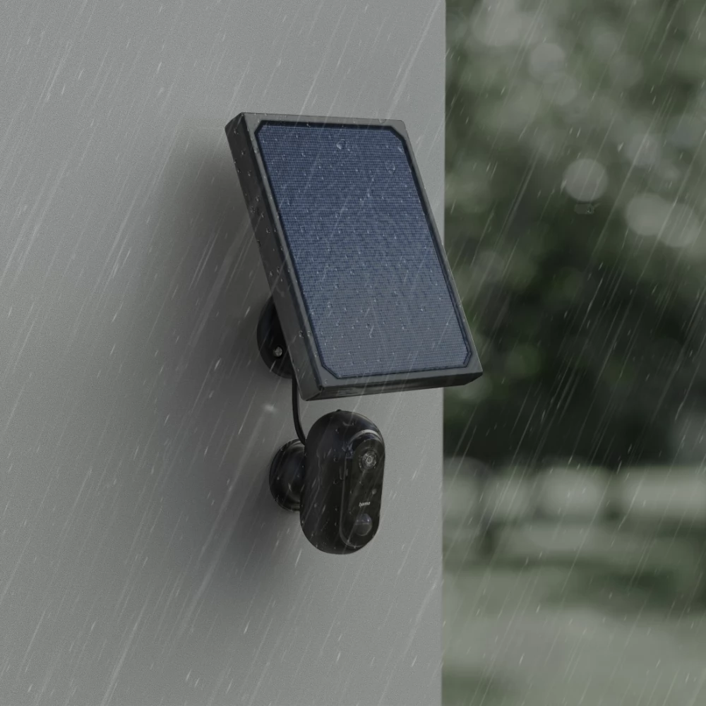 Kültéri, vezeték nélküli, akkumulátoros WIFI okoskamera napelemes támogatással, egyszerűen, kényelmesen megfigyelhető vele pl. a ház előtti terület, az udvar, vagy a kert.