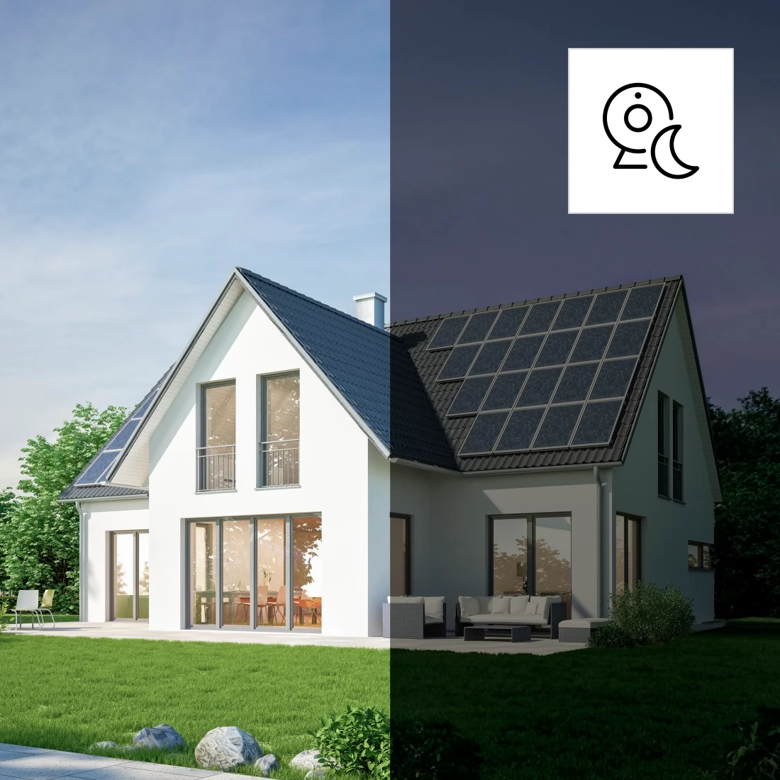 - Por és fröccsenő víz elleni védelem: az IP54-es védelmi osztálynak köszönhetően a megfigyelő kamera állandó kültéri használatra is alkalmas, és mindig tiszta rálátást biztosít az ingatlan külső területeire
