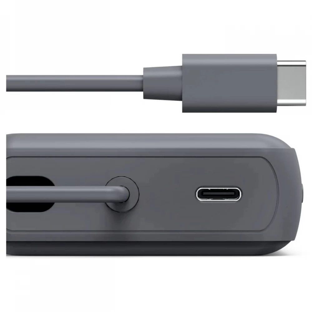 - Bemenet / Kimenet: USB-C integrált kábellel, hossza 6,5 cm használaton kívül a csatlakozó biztonságosan tárolható a mélyedésben