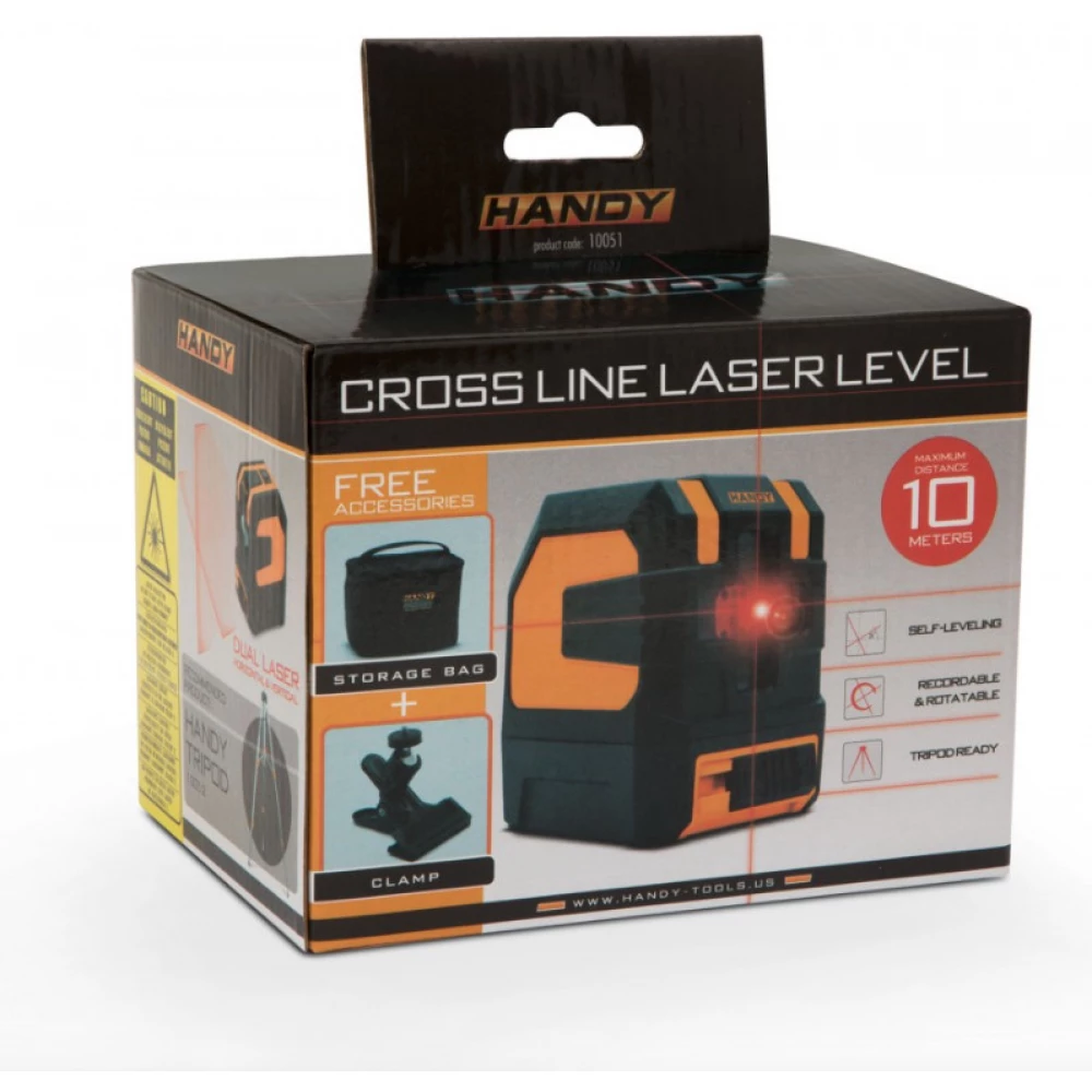Ennek az új Handy lézer szintezőnek a segítségével egyszerűen rávetíthet a falra, padlóra, mennyezetre egy lézerkeresztet. Az eszköz számos területen nyújthat segítséget, legyen szó egy egyszerű kép felrakásáról, vagy akár csempézésről, gipszkartonozásról, szegélyek rögzítéséről. Rögzítőcsipesz vagy állvány segítségével stabilan rögzítheti a készüléket, amíg a lézer vonalában elvégzi a szükséges tevékenységet, pl.: jelölés, fúrás, rögzítés. A csomagolásban található egy praktikus hordozótáska és egy rögzítésre szolgáló erős, univerzális csipesz is.