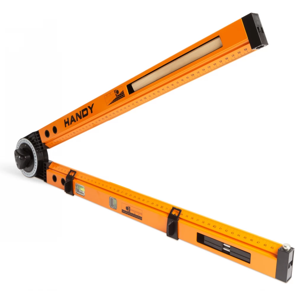 Barkácsolás vízmérték nélkül? Esélytelen! Ha sokat barkácsolsz, netalán lakásfelújításra adtad a fejedet, akkor tudod, hogy egy profi vízmérték mindenképpen kell a szerszámosládádba. De mit szólnál hozzá, ha azt mondanánk, hogy ez a kompakt eszköz nem csak vízmérték, de szögmérő, vonalzó és jelölő eszköz is egyben? Légy nagyon pontos és használd ezt a Multifunkciós szögmérő, vonalzó, vízmérték, jelölő eszközt egyben , hiszen már Te is jól tudod: ha szerszám, csakis a HANDY ! Hasznos tudnivalók: Ez a multifunkciós eszköz ácsok, asztalosok, barkácsolók legjobb barátja lesz, minden körülmények között megállja a helyét! Többek között vonalzóként, szögmérőként, szögmásolóként, vízmértékként, körzőként is használható. A szögmérő akár 270°-ban képes nagy pontossággal szöget mérni és másolni. A masszív, hosszú szárakat a megfelelő szög beállítása után egy nagyméretű rögzítőcsavarral lehet fixálni. A két alumínium száron található: 2 x 50 cm vonalzó, állítható műanyag jelölők, valamint a szárba épített ceruzatartóban ácsceruza, így könnyen használhatjuk jelölésekre is. A tartozék körzőhegyeket a szár végén lévő gumifedelet kinyitva helyezhetjük a szár végébe, így körzőként is használható az eszköz. A körzőhegyeken túl, a tartozék ácsceruza is rögzíthető, de csak nagyobb szögek jelölésére. (Vagy igény esetén szükséges egy rövidebb ceruza). A függőleges és vízszintes kalibrált libelláknak köszönhetően használható vízmértékként is, akár nyitott, akár zárt szárral is. A szár végébe épített mágneses zár megakadályozza a szárak véletlen kinyílását. A 4 db akasztólyuk egyszerű tárolást biztosít.
