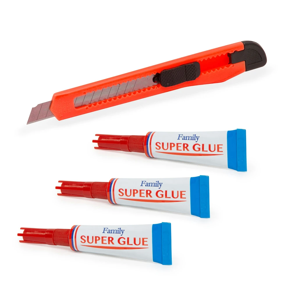 Szuper erős ragasztó, gyors kötőerővel. Alkalmas fa, műanyag, kerámia, gumi és fém ragasztására. Használható mindennapi háztartás, elektromos készülékek, kiegészítők, hobbi- és sportfelszerelések, automobil kiegészítők ragasztására. 3 x 3 g-os ragasztó adagoló tubus, univerzális késsel, 9 mm-es cserélhető pengével.