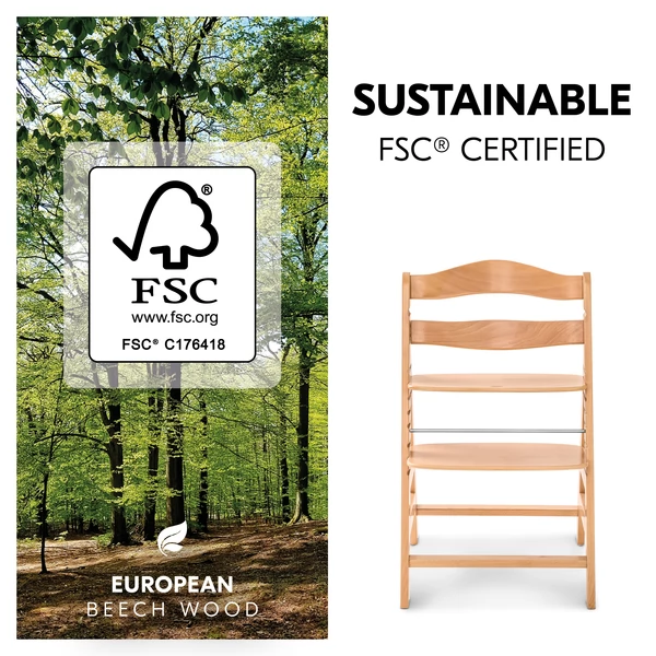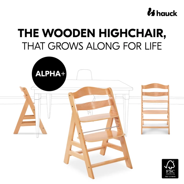 - Az Alpha+ európai bükkfából készült, amely FSC®-tanúsítvánnyal rendelkező erdőkből származik, amelyek fontosnak tartják a fenntartható és ökológiai erdőgazdálkodást a növények és állatok védelme érdekében. Az állítható ülésnek és láblemeznek köszönhetően az Alpha+ alkalmazkodik a növekvő gyermekéhez, a stabil felépítése pedig lehetővé teszi, hogy gyermeke akár 198,42 font súlyig is használja.
