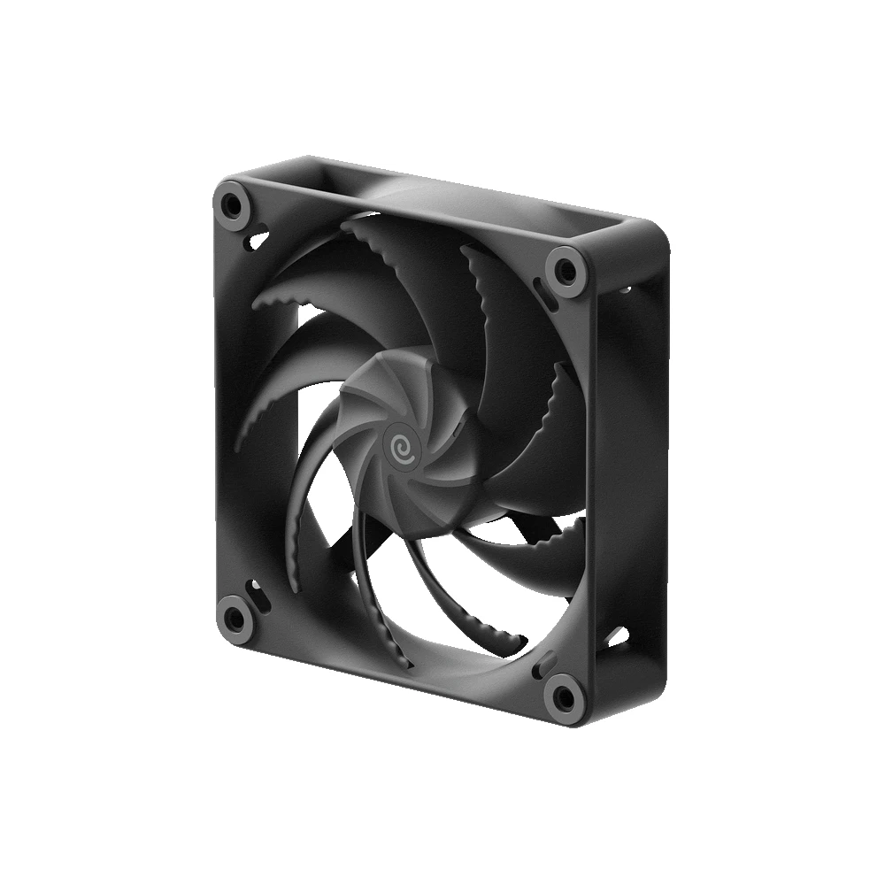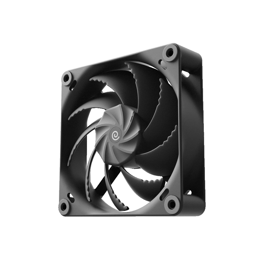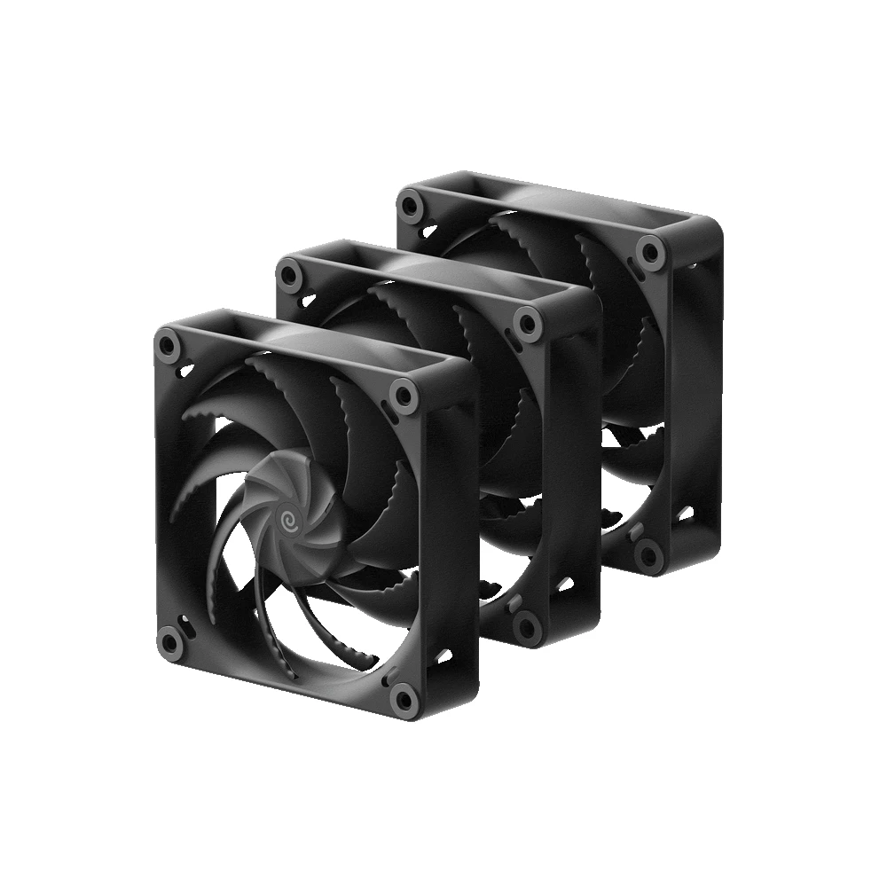 3 darab 120mm-es (30mm vastag) házhűtő ventilátor PWM sebesség szabályzással, egyedi lapát kialakítással (hatékonyabb légáramlás és kisebb turbulencia), rejtett kábellel és rezgéscsillapítós felfogatókkal.