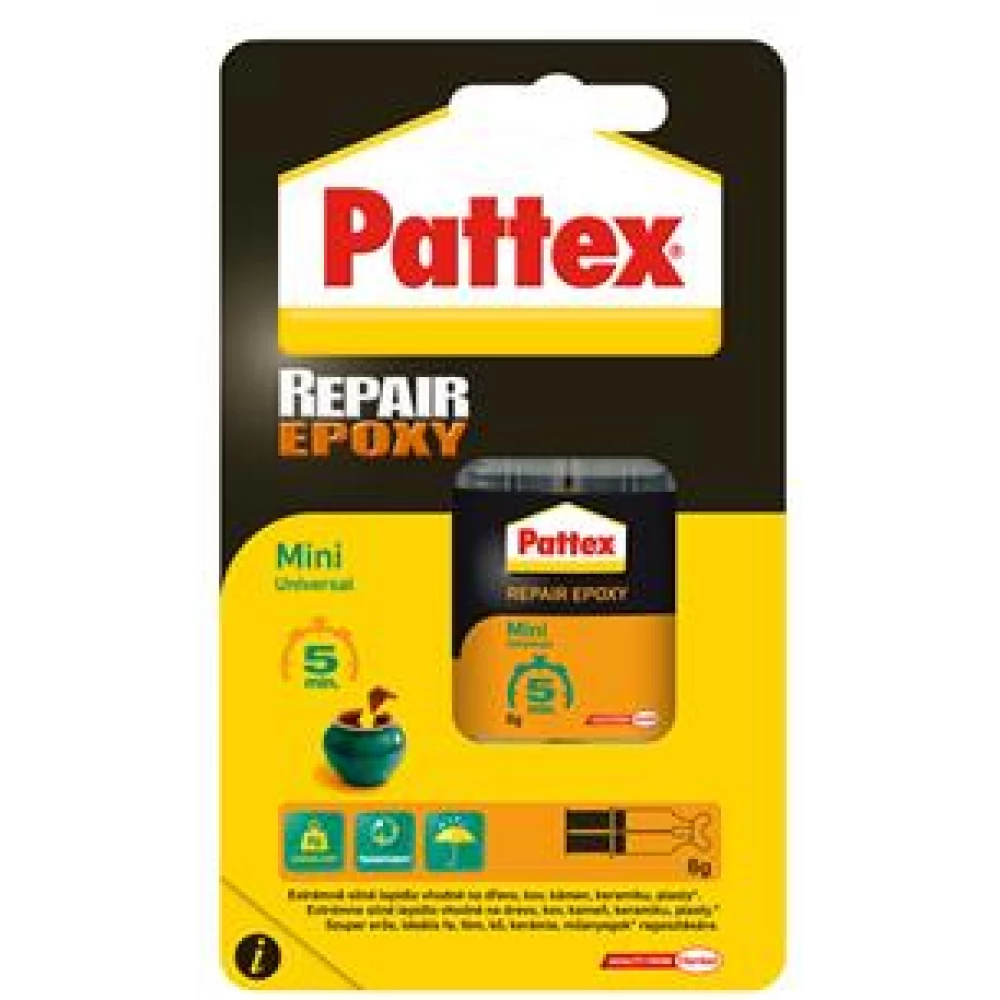 A Pattex Repair Universal epoxi ragasztó rendkívül hatékony teljesítményével szinte minden felületen és minden célra alkalmazható. Kétkomponensű, oldószermentes epoxi ragasztó, amely többek között üveg, üveggyapot, parafa, fa, kerámia, fém, műanyag (kivéve PP, PE és Teflon ®), kő, márvány és beton ragasztására alkalmas.