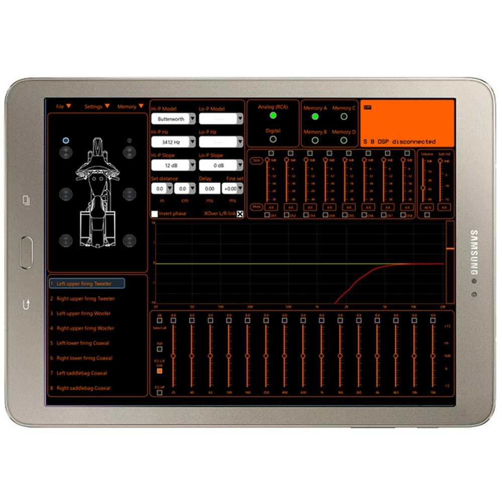 A nagy teljesítményű 32 bites DSP (digital signal processor) 6 magas/alacsony szintű analóg bemeneti csatornát, egy digitális koaxiális bemenetet és 8 kimeneti csatornát kezel, hihetetlen konfigurációs szabadságot biztosítva a szakembereknek. Az SPDIF koaxiális bemenet ideális a nagy felbontású lejátszóhoz való digitális csatlakozáshoz, ez a megoldás maximális hangminőséget tesz lehetővé. Mind a nyolc kimeneti csatornához elérhető szintszabályozás, 15 pólusú parametrikus hangszínszabályzó, időkésleltetés és keresztváltó. A bemeneti jel 7 sávos parametrikus hangszínszabályzója lehetővé teszi az OEM források egyenletes átvitelének elérését, amelyek gyakran túlzott hangsúlyt fektetnek az alacsony frekvenciára.