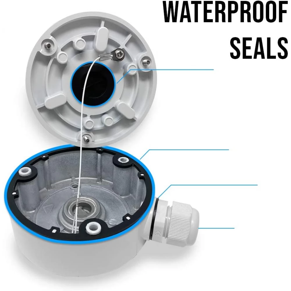 Kiváló minőségű, alumínium-ötvözetből készült kötődoboz dóm kamerákhoz.