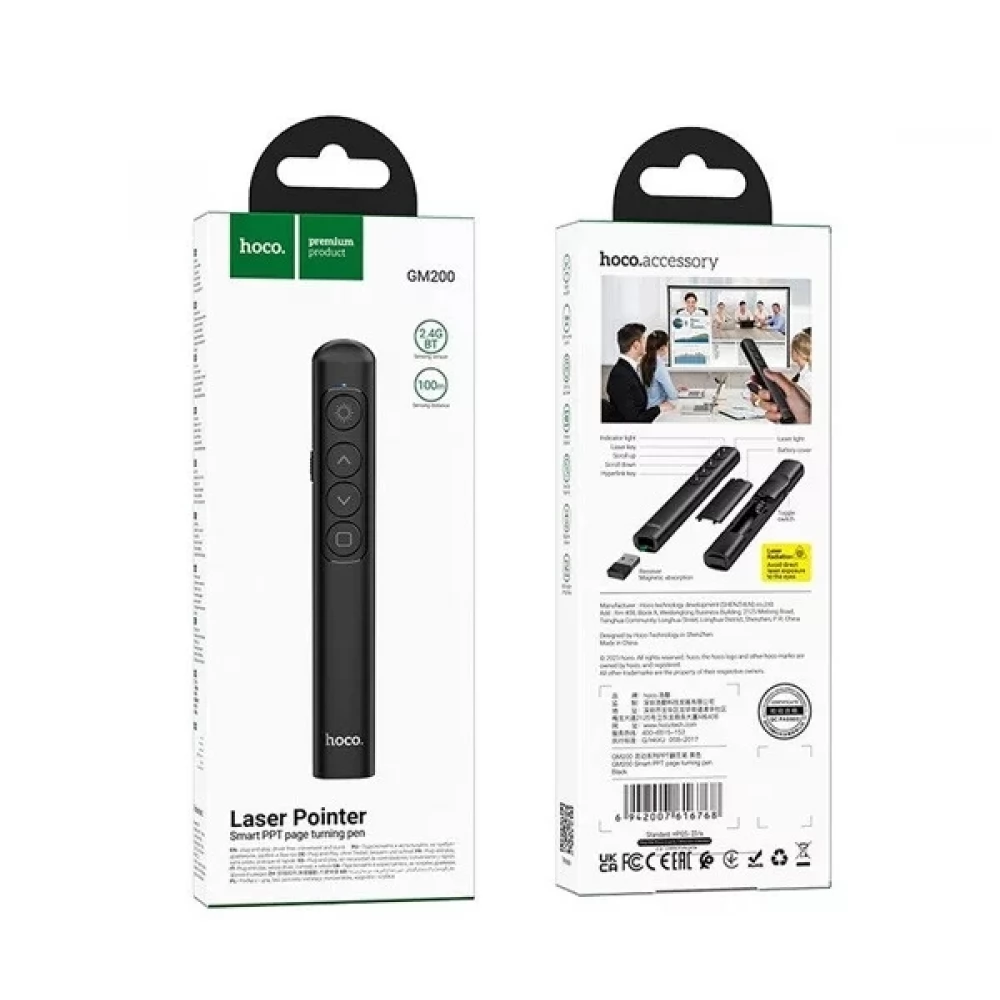 HOCO GM202 Wireless lézer Prezenter/Pointer Bluetooth Fekete