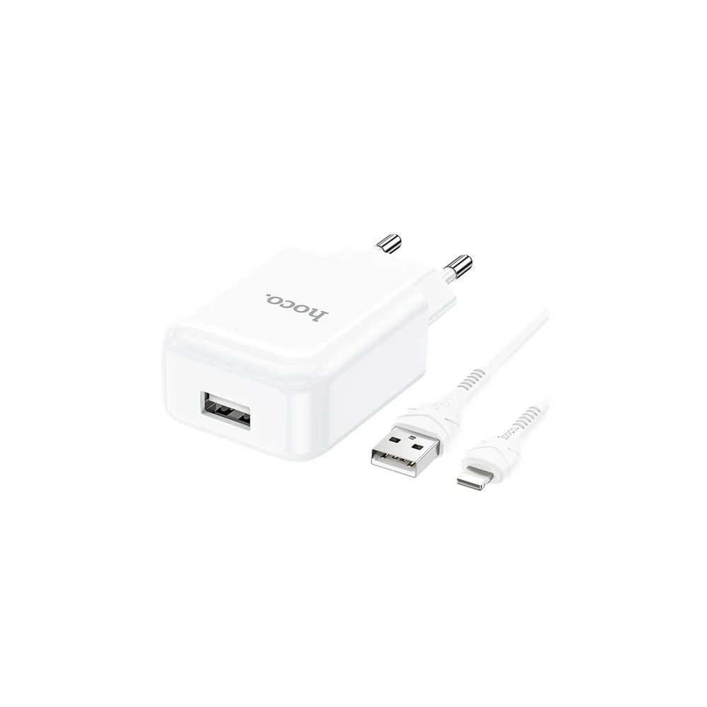 HOCO N2 hálózati töltő USB aljzat 10W. gyorstöltő + lightning kábel. FEHÉR