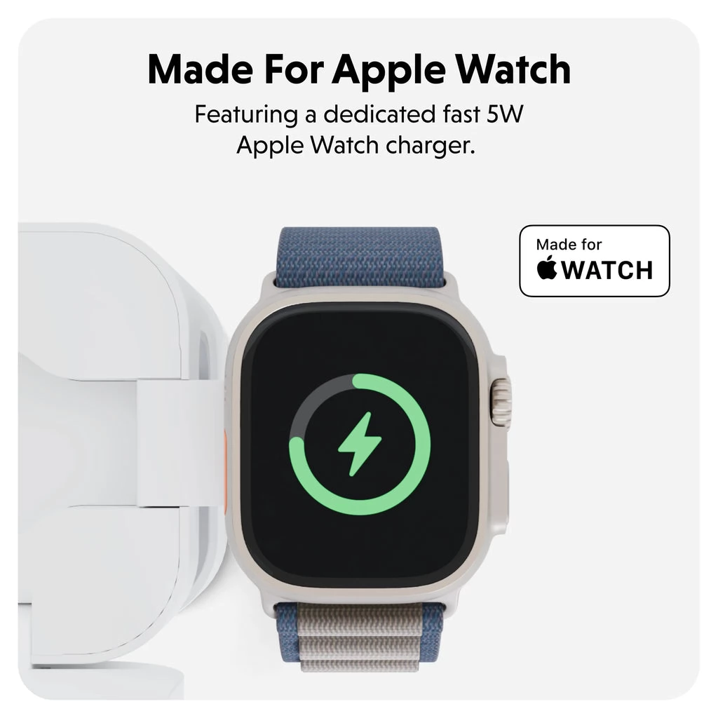 Nincs több töltőkkel és kábelekkel való zsonglőrködés. Kapcsolja be egyszerre iPhone (akár 15 W), Apple Watch (akár 5 W) és AirPods (akár 5 W) teljesítményét. Tökéletes azoknak az Apple felhasználóknak, akik szeretnék biztosítani, hogy az alapvető eszközök mindig fel legyenek töltve és készen legyenek.