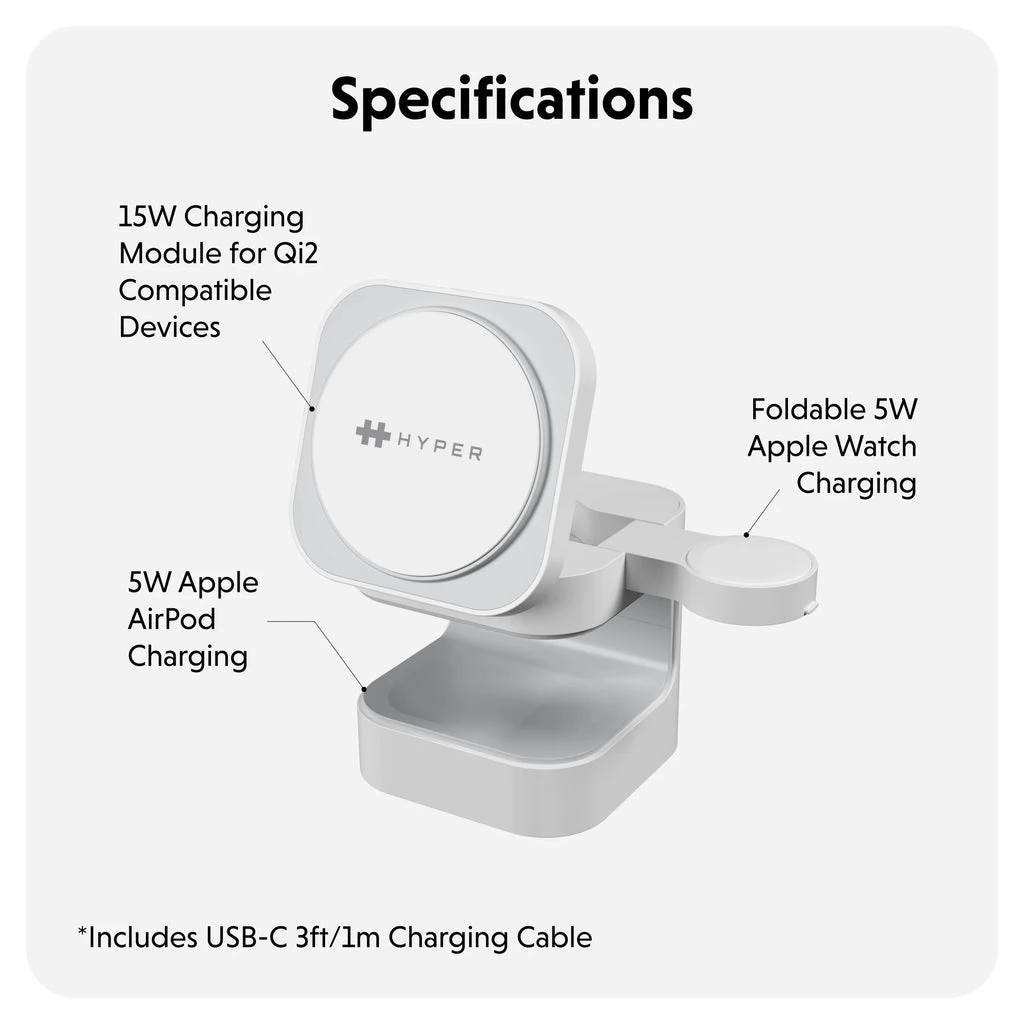 HYPER HyperJuice 3in1 Qi2 Vezeték nélküli mágneses töltő fehér