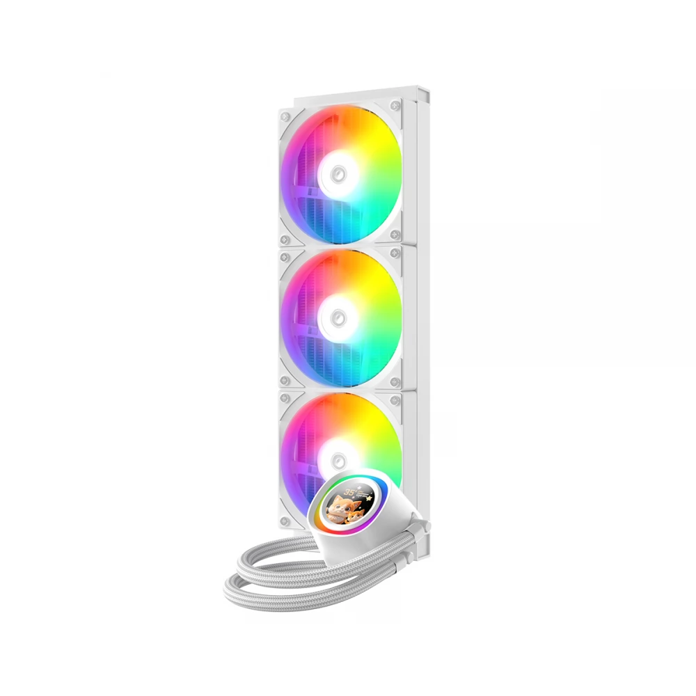 Kompakt, univerzális vízhűtés 3 darab 120mm-es vezérelhető ARGB világítású, PWM szabályzású ventilátorral, 360mm-es radiátorral és szintén vezérelhető ARGB világítású CPU vízhűtés blokkal 350W TDP-ig. A hűtő különlegessége a CPU hűtőblokkon található 1.48" LCD kijelző (240x240) amin képeket, animációkat, rendszerinformációkat jeleníthetünk meg, a 27mm vastag radiátor (37%-al nagyobb hűtőfelület), a réz CPU érintkezőfelület és a 7. generációs szivattyú (csendes/hatékony).