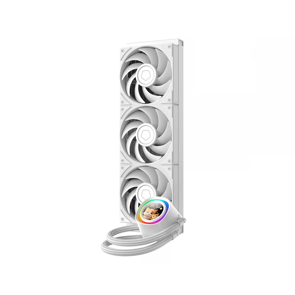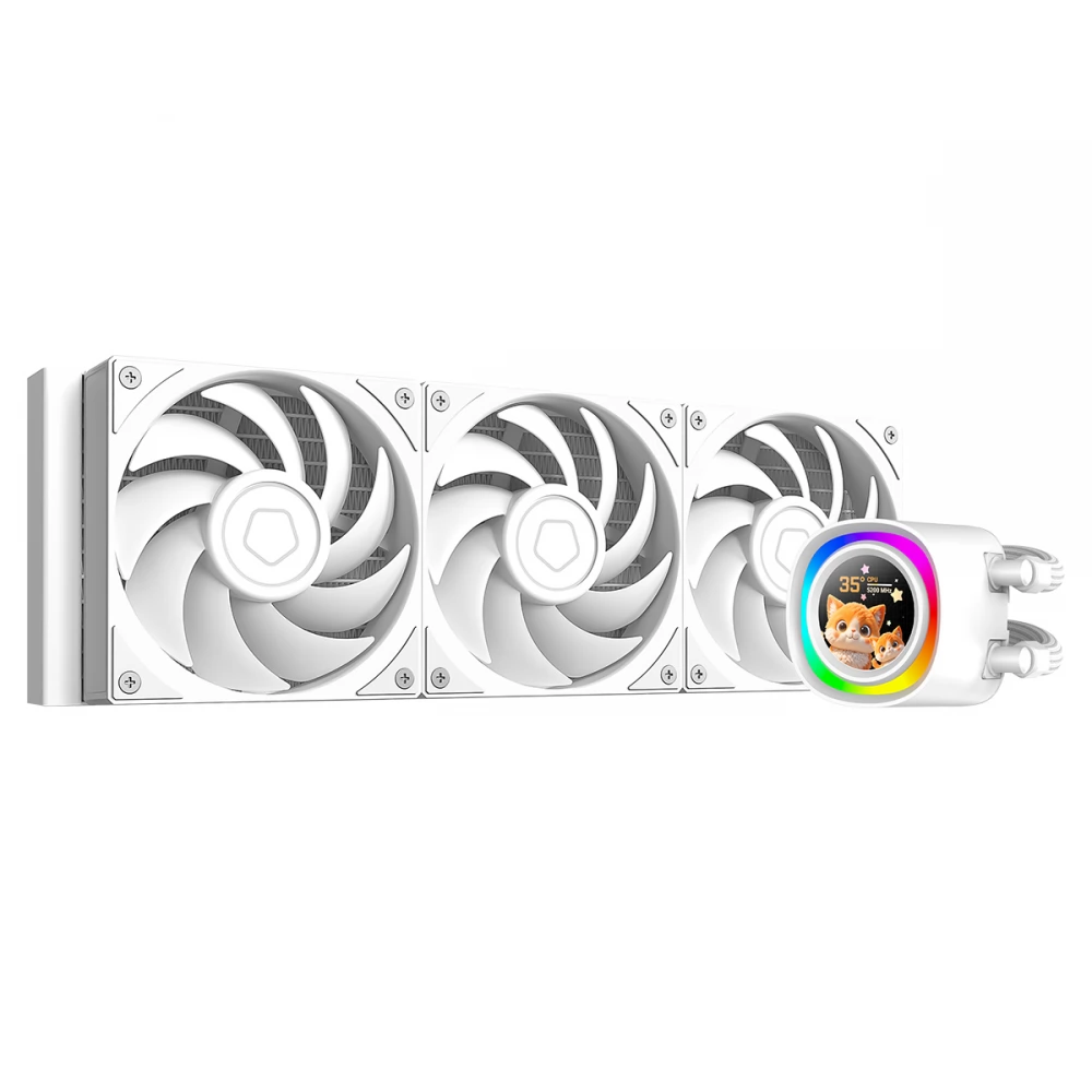 Kompakt, univerzális vízhűtés 3 darab 120mm-es PWM szabályzású ventilátorral, 360mm-es ardiátorral és vezérelhető ARGB világítású CPU vízhűtés blokkal 350W TDP-ig. A hűtő különlegessége a CPU hűtőblokkon található 1.48" LCD kijelző (240x240) amin képeket, animációkat, rendszerinformációkat jeleníthetünk meg, a 27mm vastag radiátor (37%-al nagyobb hűtőfelület), a réz CPU érintkezőfelület és a 7. generációs szivattyú (csendes/hatékony).