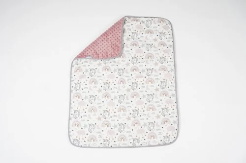 Kétoldalas, szuper puha, bélelt babatakaró otthoni alváshoz, utazáshoz, vagy akár játékszőnyegnek.