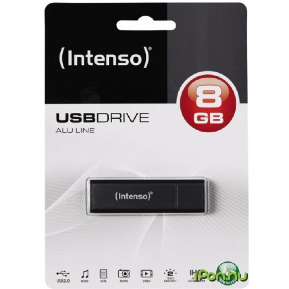 INTENSO Alu Line 8GB-os Fekete színű pendrive USB 2.0 csatlakozással.