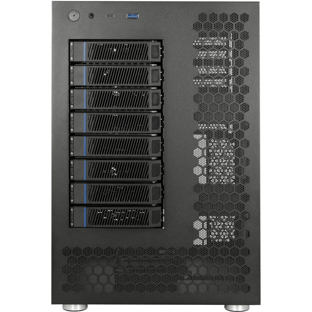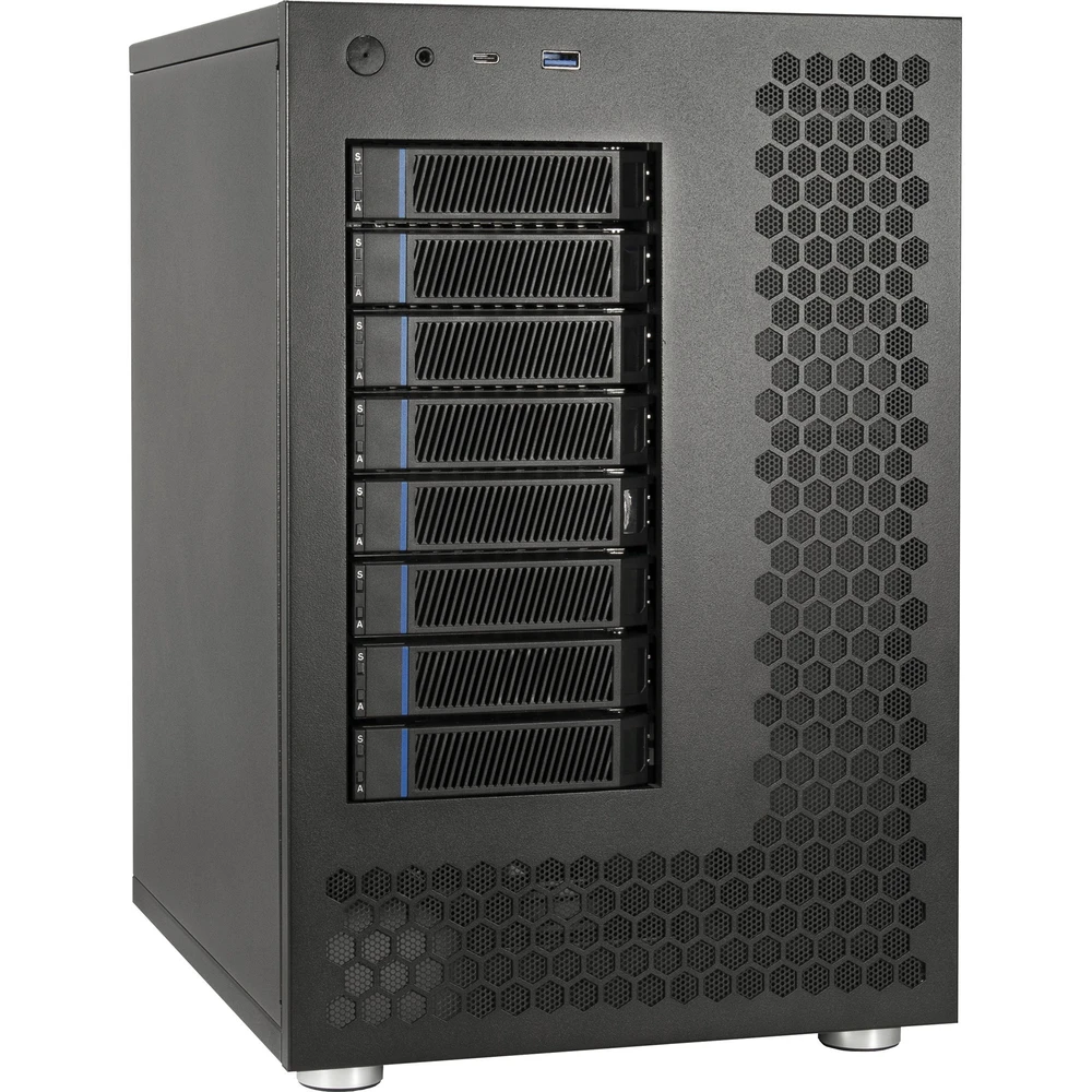 A NAS-8 egy fekete színű, kompakt NAS ház, amely akár 8 merevlemez befogadására képes. A ház 2 darab 120mm-es ventilátorral rendelkezik az optimális hűtés biztosítására, amelyek a backplane-eken keresztül kapják az áramellátást.