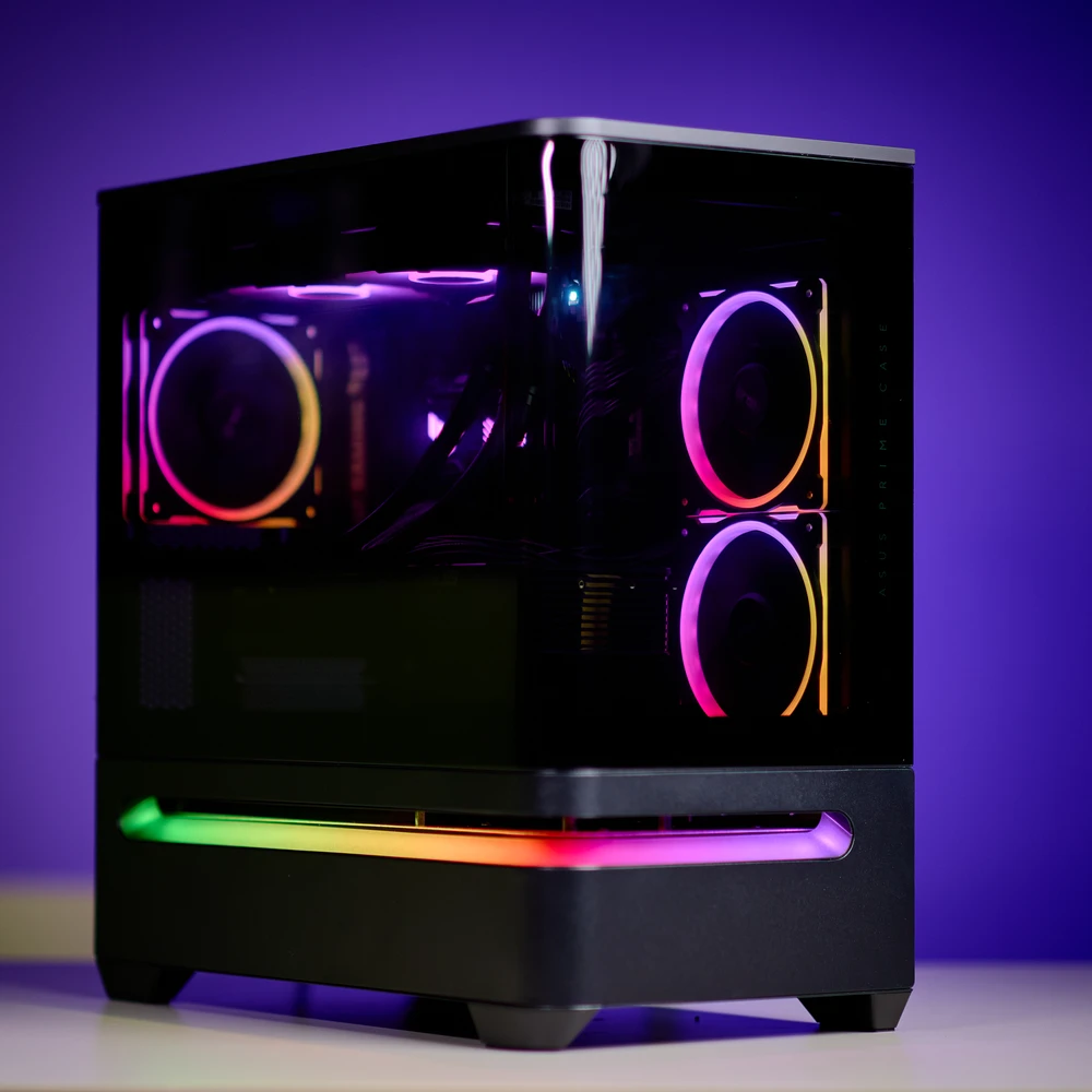 - Ház: ASUS Prime AP202 TG fekete + 3 db ARGB ventilátor