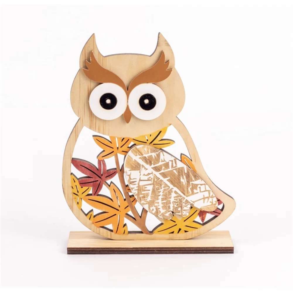 Fa bagoly dekoráció, falevél mintás, őszi színekben. Mérete: 16 x 4 x 20cm.