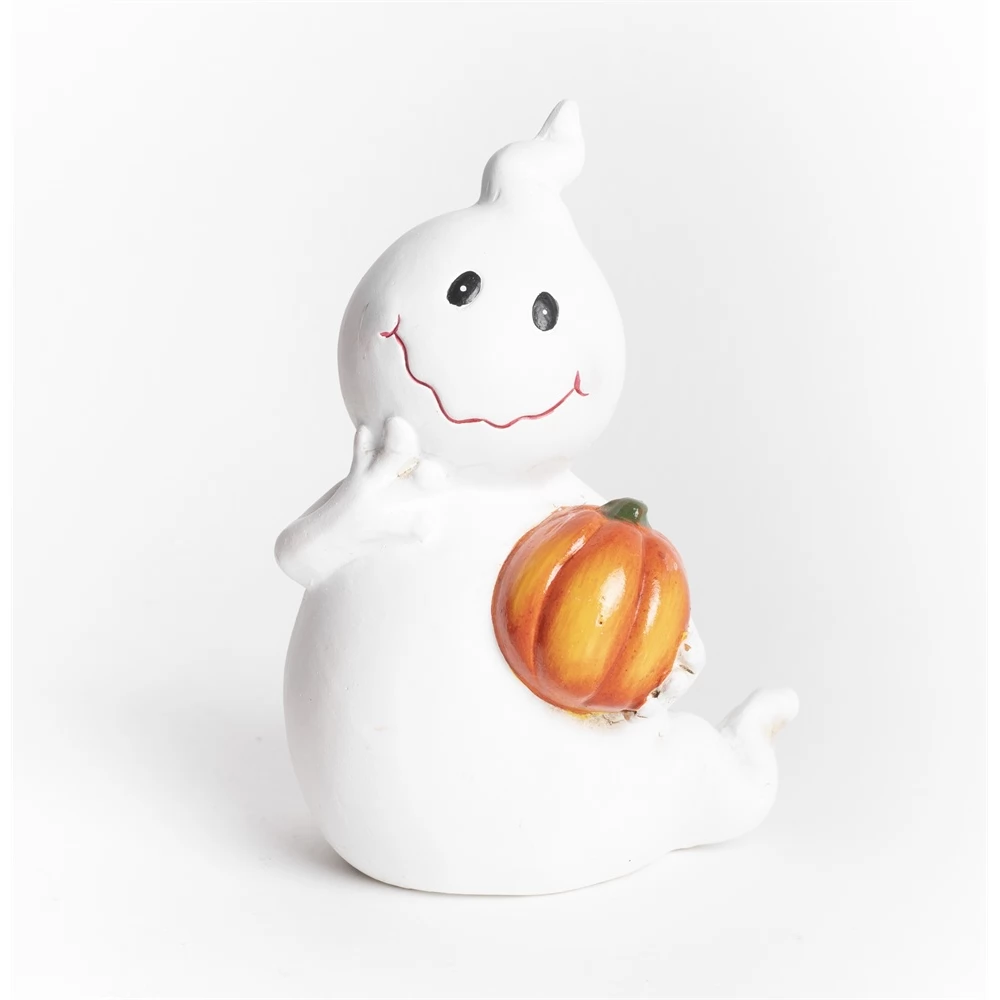 Kerámia szellem dekoráció tökkel, mérete: 15,5cm.